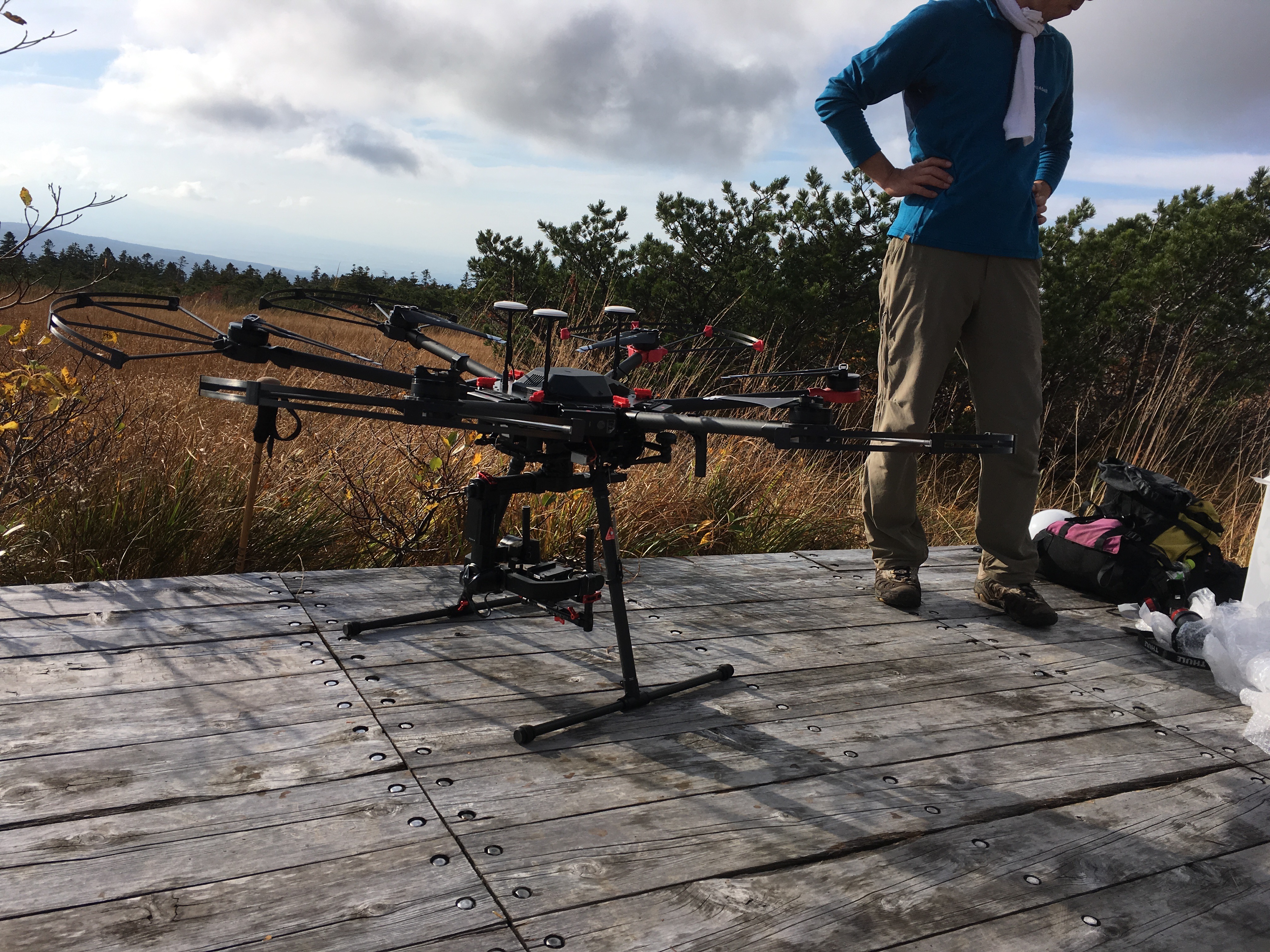 大型のドローンを使っての撮影。