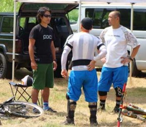 ブースでは、POCのプロテクターの紹介や自転車談義に花が咲いています。