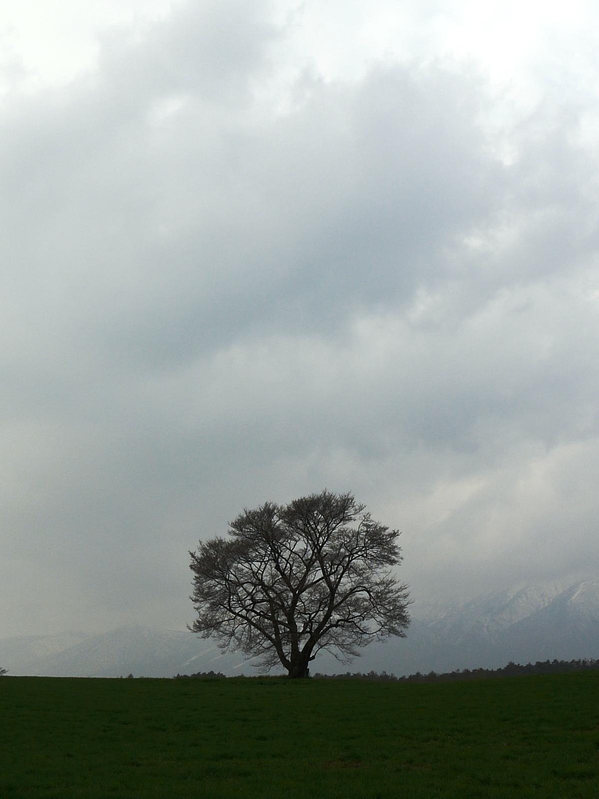 小岩井の一本桜をながめながら移動。満開の時期に見たいものです。