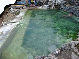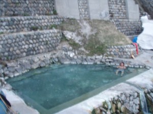 山小屋はまだあいておらず天然の温泉が野ざらしになってて