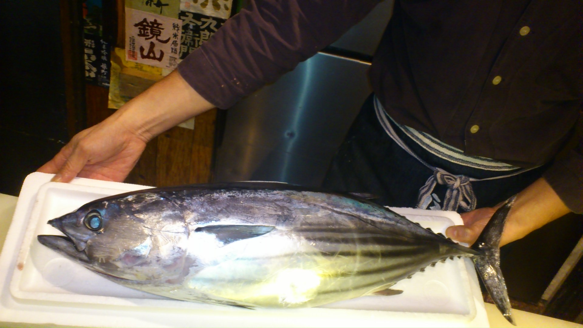 っともらってきた朝獲れ「戻り鰹」。