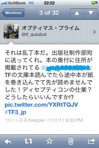 あのトランスフォーマーのオプティマス・プライムからお返事ですよ?