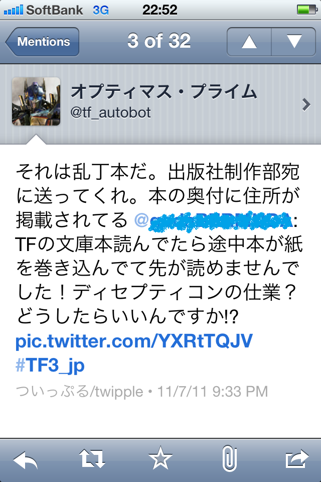 どうやらディセプティコンの仕業ではなく、乱丁本だったようです。