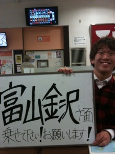 話しを聞けば学生二人で中部エリアをまわっているようで外はミゾレ混じりの雨。