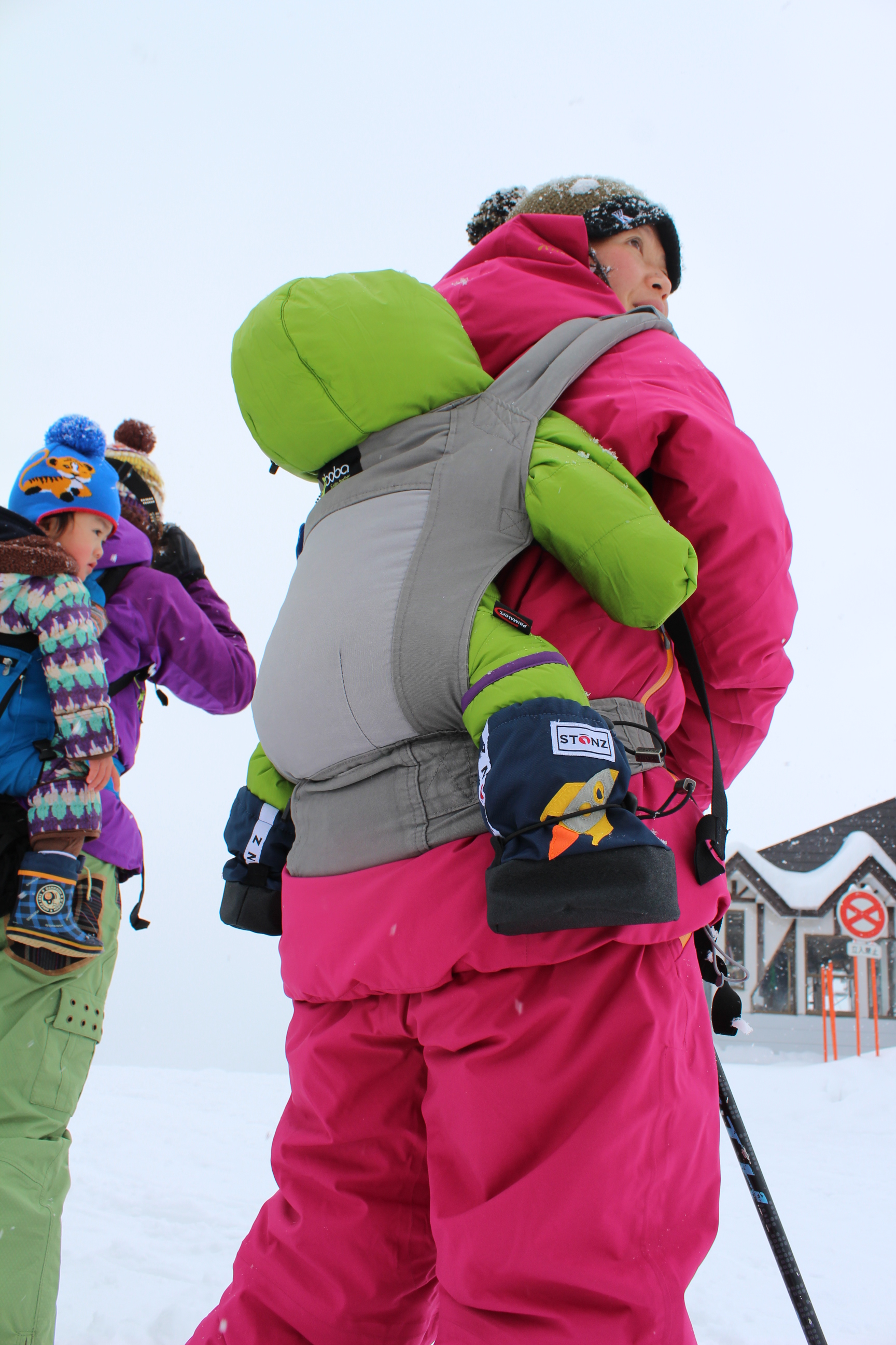 今や、息子を担いで滑り出しにテンション上がりまくっています。