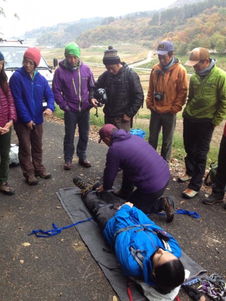 急な斜面をロープを使って高度を下げる方法など、貴重な経験談と共に分かりやすく教えてくれました。
