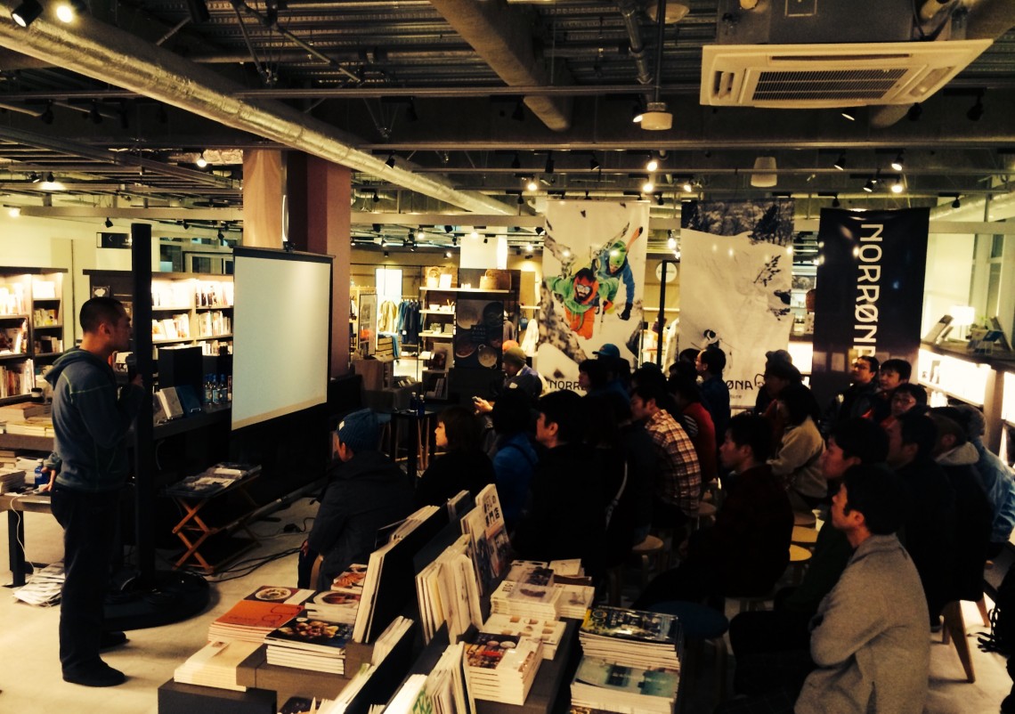 会場となった湘南蔦屋は12月下旬までスキー・スノーボードの特設書籍コーナーが設けられ、