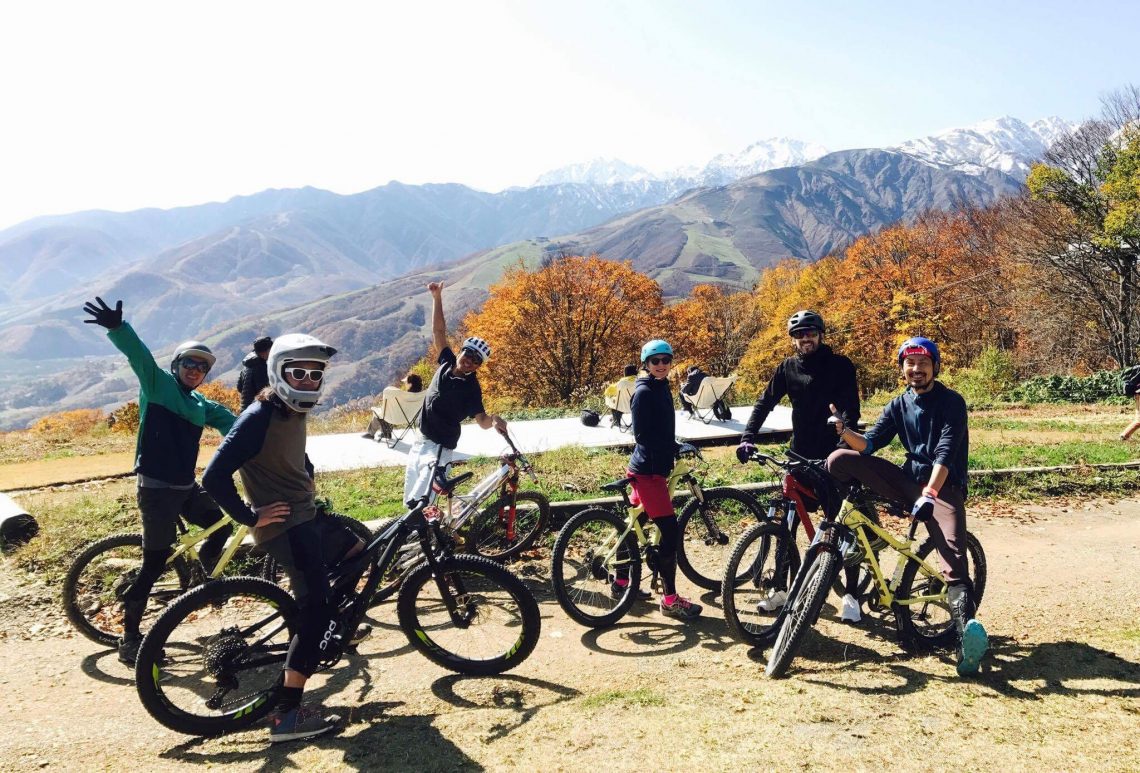 木曜日は来ました!The Day! 10月では1番じゃないかと皆が口をそろえて言うほどの快晴です。この日は岩岳スキー場のMTBコースで遊ぼうという事になっていたので皆でダウンヒル~