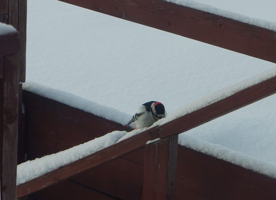 暖かい日が多くなり、キツツキが我が家を壊しに来るようになりました。
