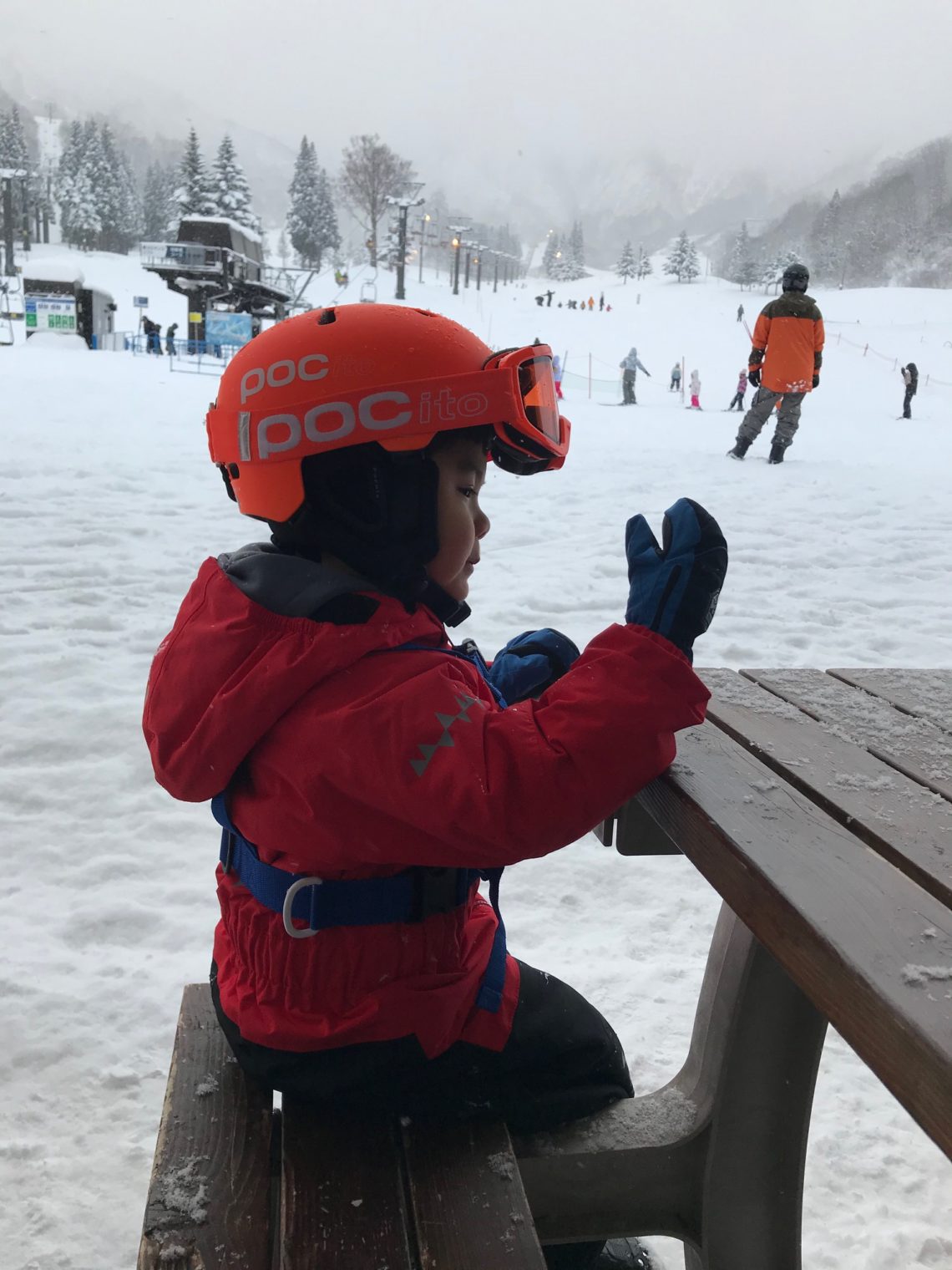 ハーネスでサポートはあるものの、しっかり立って転ばずに降りてこれたのでした。あっという間に滑れちゃうんだろうなぁ、子供って本当凄いです。