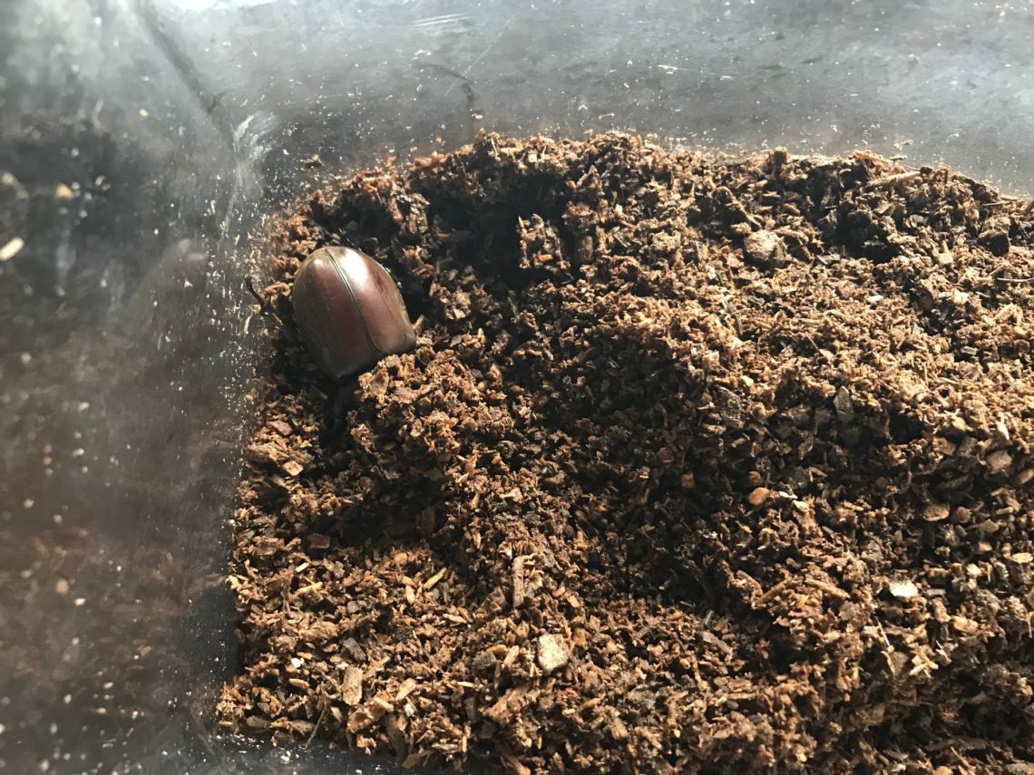 カブトムシは夜行性。スイカとかはあげるとお腹壊すから昆虫用ゼリー。