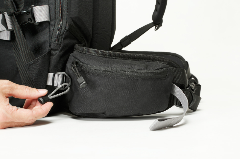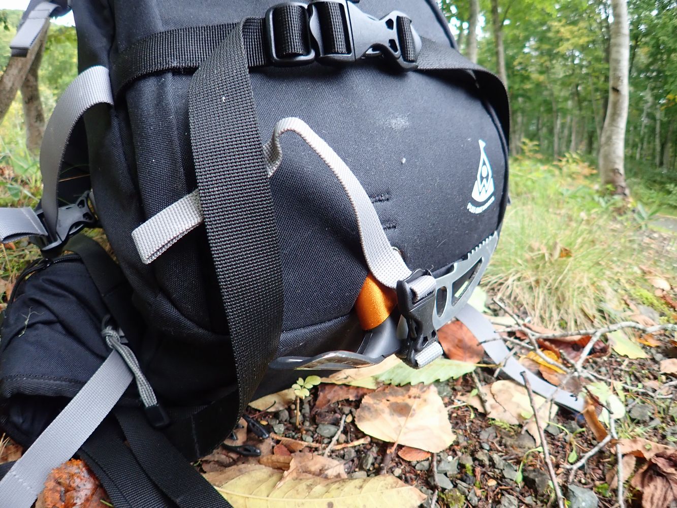 ショルダースタビライザーとともにウェスト(ヒップ)スタビライザーは重いザックを背中にしっかりフィットさせるための機能です。ザックを担いだり降ろしたりするときに行なうこの作業を、より素早く行うためにストラップによるクイックリリース機能が付加されているのが◎