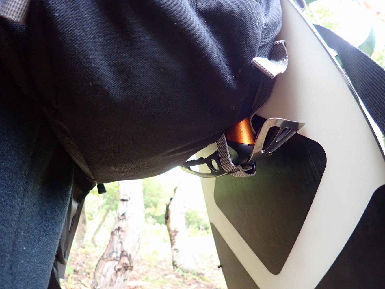 スノーボーダーが使うピッケルは短めのタイプが多く、今までは取り付け場所が限られてたり、無いものが多かったのです。