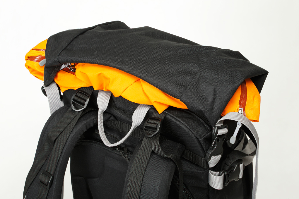 ロールトップ、背面アクセス、ゴーグルポケット、ウェストポケットの各収納荷室が、バランスよく効率的な配置になっていて非常に使いやすくなっています。