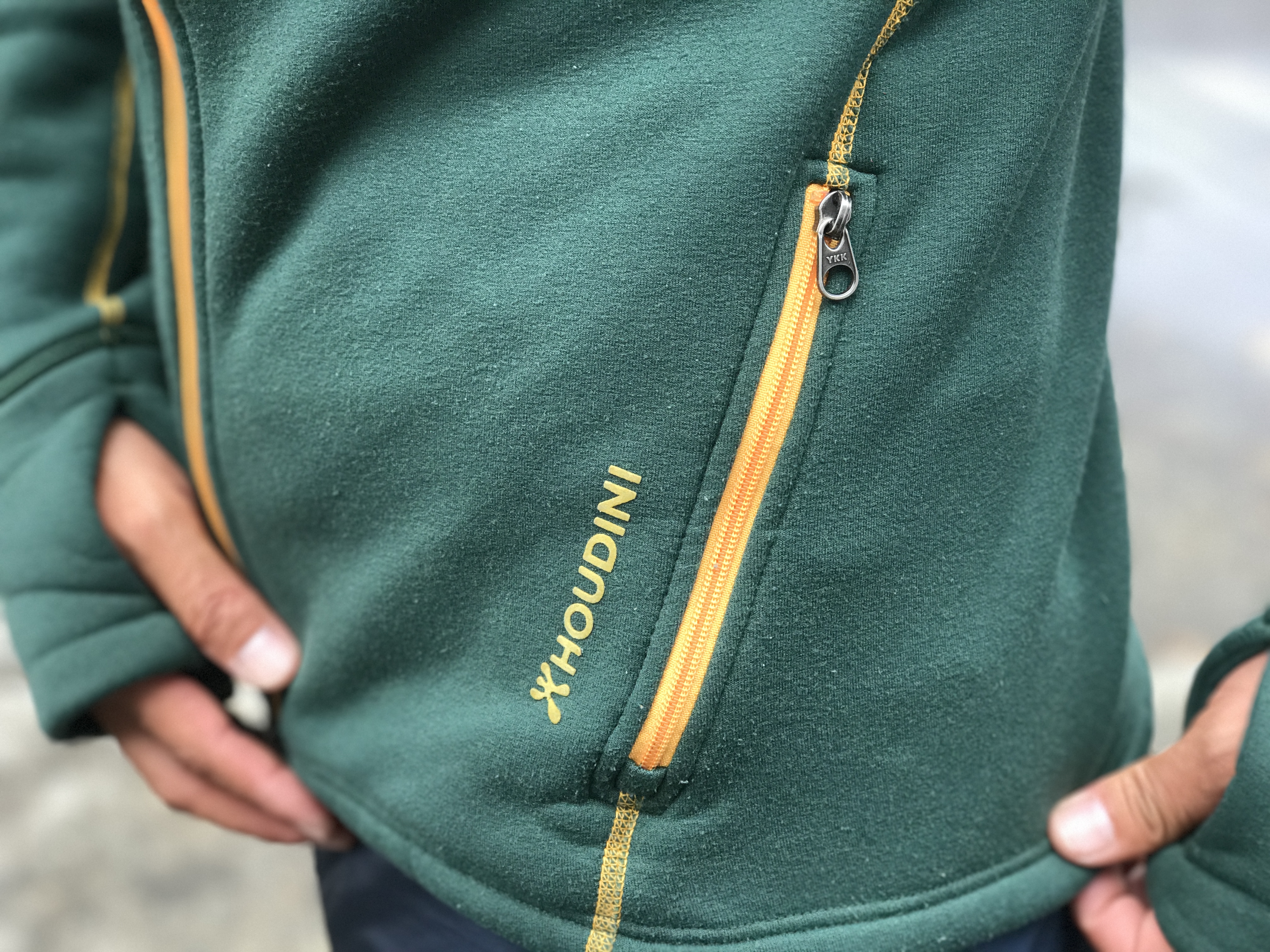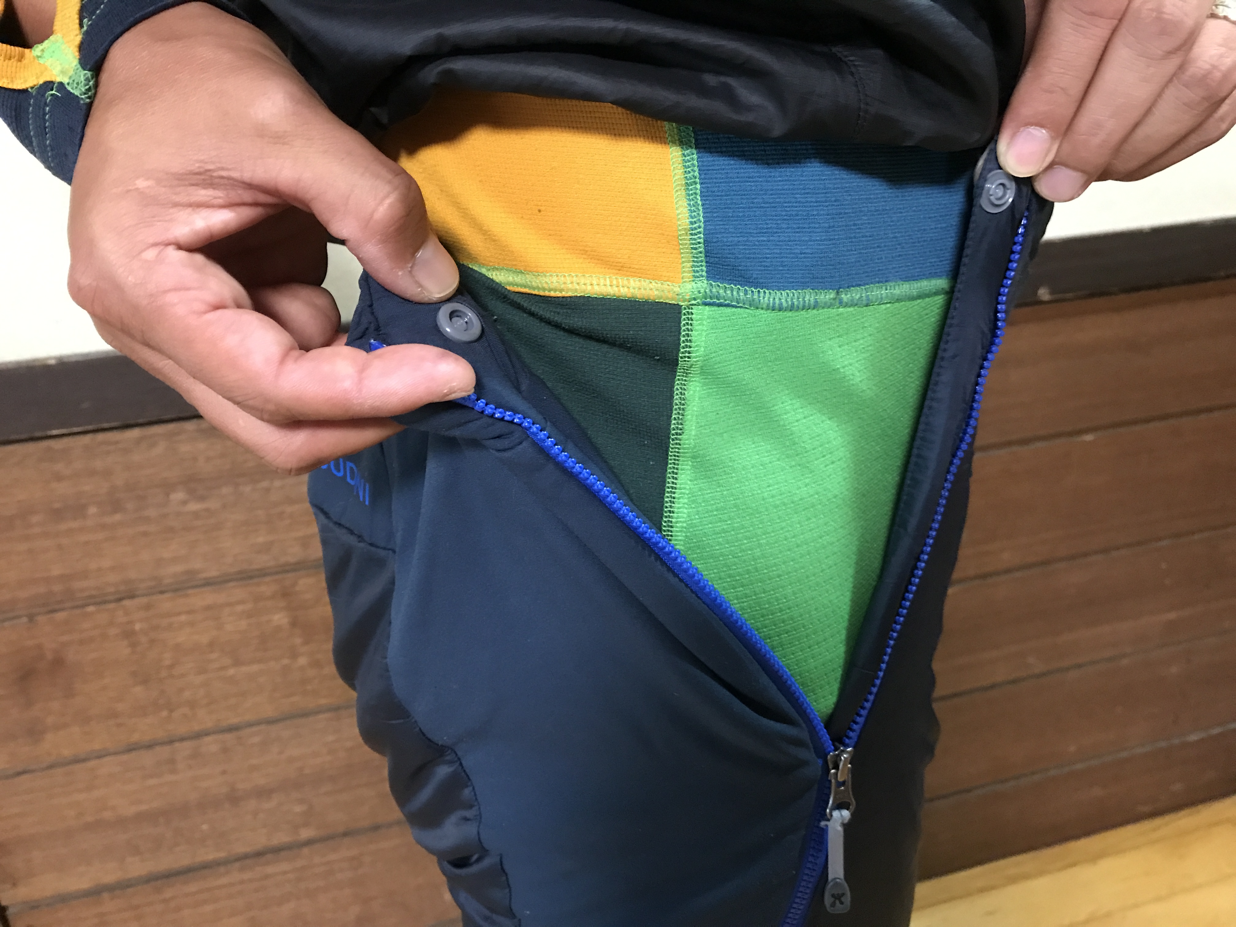 着脱可能なサイドジップも重宝してます。山から降りてきてウェアを脱いでこのままいる事も多いです。気がつくと、1年中ずっと全身フーディニです(笑)。