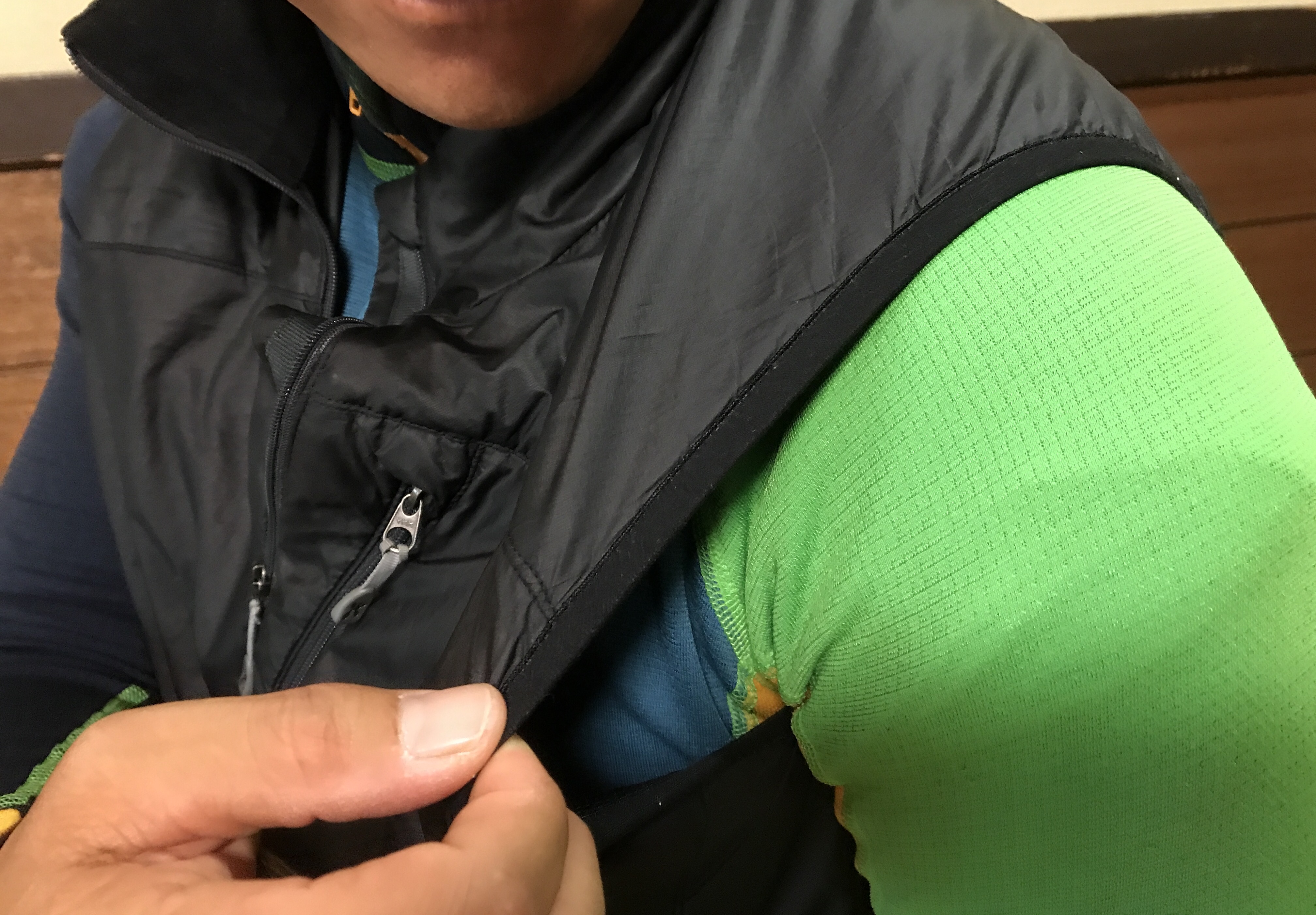 それに加え、ジップを急いで上げた時にカバーがあるので皮膚を挟まないので安心して使えます(笑)。暑くなったらパッカブルなのでしまってザックに入れるかポケットにしまってます。もちろんフィールドでは Endure Shorts との組み合わせが多く、使い方は上下のバランスで着合せてます。