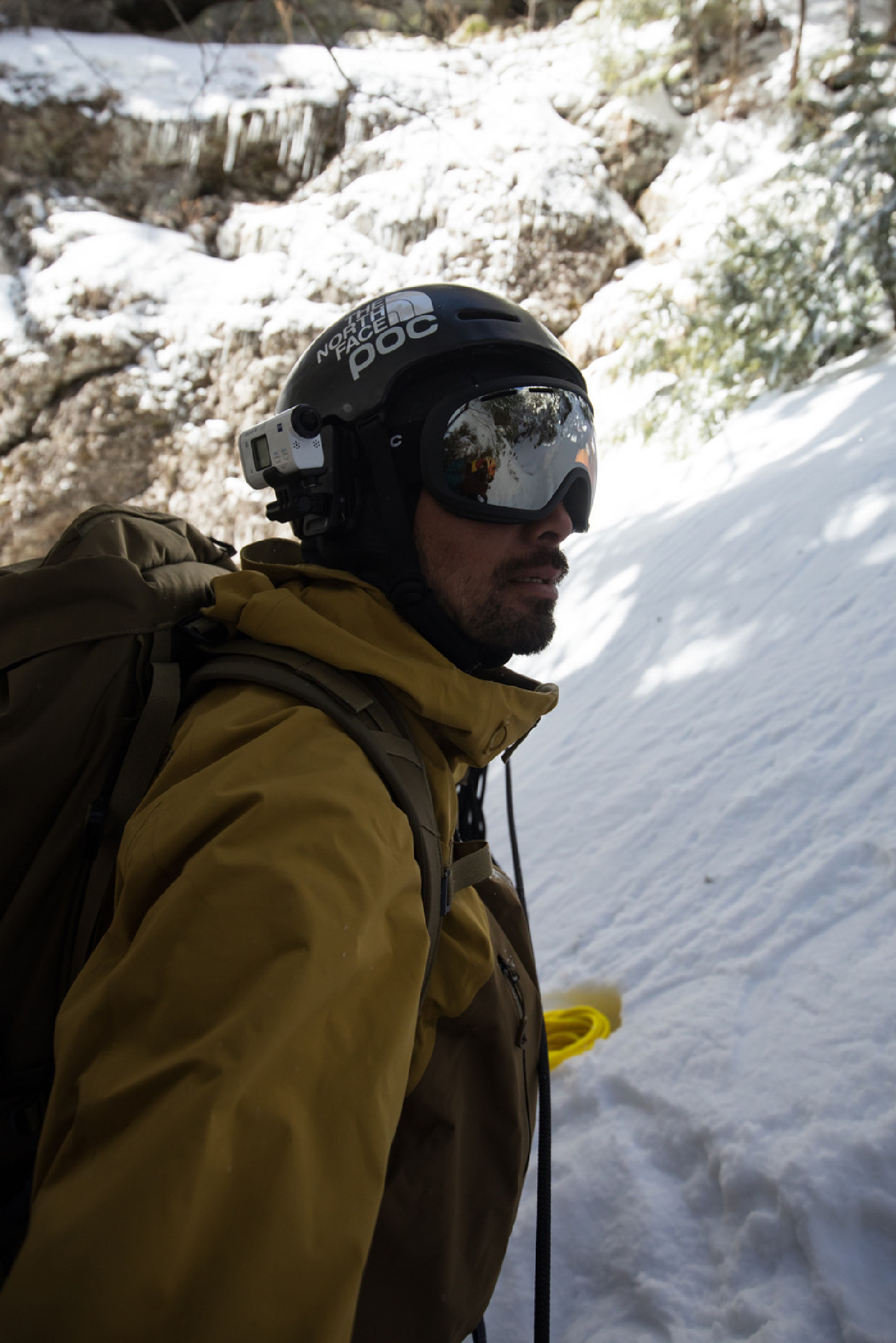 サングラスは、 Did Glacier Jeremy Jones Edition / ジェレミージョーンズモデルを使用。氷河での行動は雪面に当たった日差しの照り返しで目をヤられることが多い。そういう場合に、必要なのがサイドに取り付けられたシールド。僕の場合は目から来る疲れで直ぐに頭が痛くなったりするので、シールドはもはや必需品となっている。風避けにもなり、ちょっとしたライディングをする場合にも向いている。