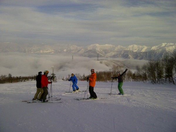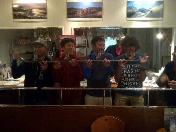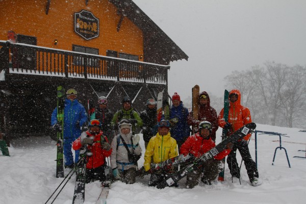 先週かぐらスキー場で「芳澤さんと滑る会」っていうのをやりました。一昨年のシーズン直前に亡くなられた芳澤さんを偲び、うちうちの仲間だけで集まって滑って、飲んでしゃべるという会。山でこれだけのメンバーといっしょに滑ることも会うこともなかなかなかったので、かなり新鮮でした。おまけによ〜く飲んだし、滑りました。