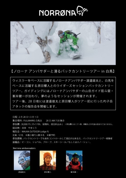NORRØNAアンバサダーの3人と滑る白馬ツアーをご案内します。