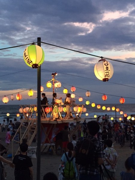 のんびりビール飲んで、盆踊りの櫓越しに海を眺めるってなかなかいい時間でした。