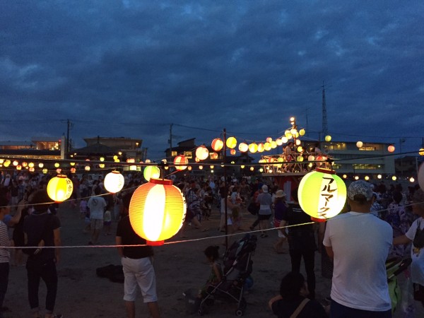 これは材木座海岸でやってる今年で3回目のイベント。夏っぽくていい企画です。子供のころはけっこうあっちこっちでこういう盆踊りってあったように思うんですが、そういえば鎌倉ってなかったんですよね、こういうのが。で、この手作りイベントはなんと提灯を購入した有志の費用でまかなわれているようです(すべてではないでしょうけど)。