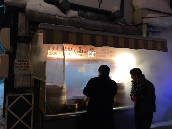 夜はみんなで街で飲んだんですけど、締めにラーメン行くってことになり店を出ると目の前にこんなお店が。もちろんいただきました。ワタクシは「あんまん」。「肉まん」もタレ付きでかなりうまそうだったなぁ… 次回は肉まんで。