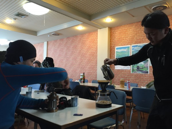 ランチの後のコーヒーブレイクは、札幌テイネから来たYMENが自家焙煎したのを丁寧にいれてくれました。至福の時間。ホントはビール飲みたいけど…