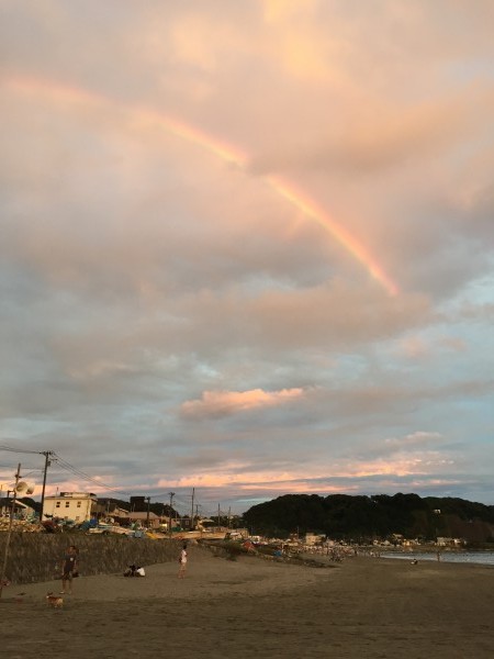 いつものように最初は夕陽と逆の方向に走り出したら、空にはきれいな虹が濃いめにかかってました。夕陽の写真を撮ってた人たちもしばらくすると気がついたのか、今度はみんなが虹の撮影を。自然が作り出す色と偶然をこうやって眺めることができることに感謝です。