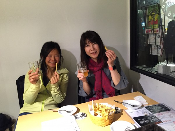 NORRØNAでサポートさせてもらっているクミちゃんと、HOUDINIでサポートさせてもらってるニッシー。ランチがらみの打ち合わせだったのですが、夜のスケジュールがフリーになったと伝えたらじゃあ飲みに行こうとなりまして、二人はそのまま夕方まで会社であれこれ試着したり商品についてのリクエストをくれたりし、その後野毛に繰り出しました。