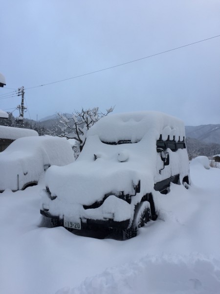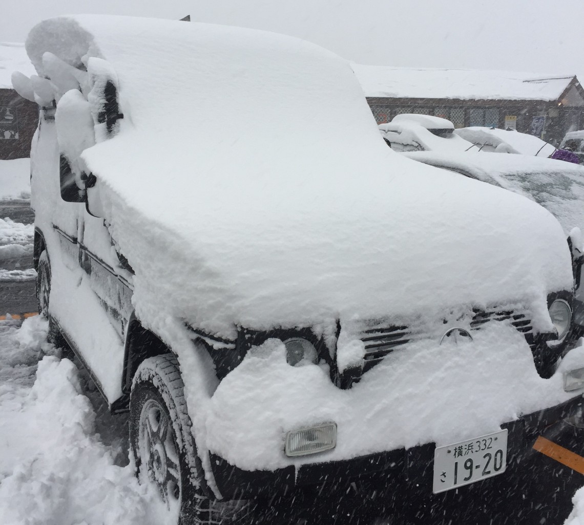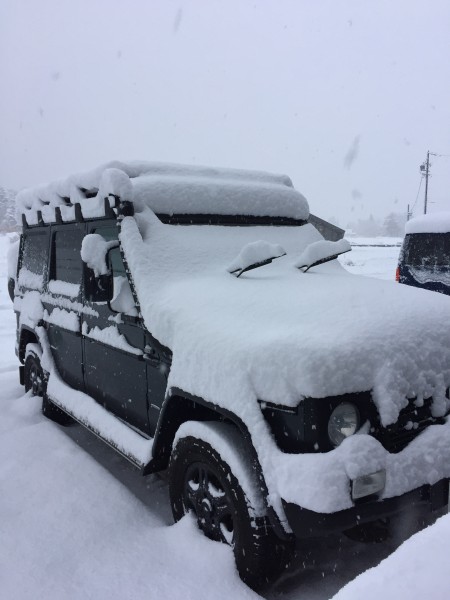 1月5日、和田小屋に泊まったおかげでファーストトラックからゲレンデパウダーを1日中満喫してガラ〜んとしたかぐらの駐車場に戻ってきたら、今日がどれだけいい雪だったのかわかる車の状況。充実した滑りの後は、この雪下ろしも苦にはならず。でも下は風が強かったのね。そりゃ寒かったわけだ。