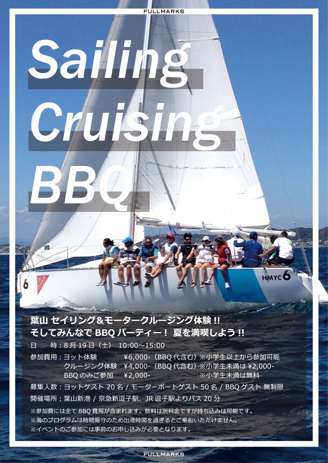 梅雨も明けてすっかり夏本番ですが、暑い盛りに海でセーリング、クルージング、BBQで遊びませんか?というお誘いです。みなさまのご参加お待ちしております!