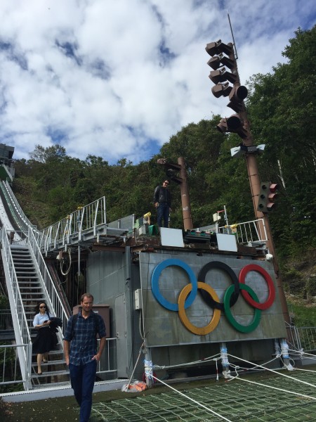 大倉山ジャンプ台の改修工事中だったため、こんなものまで間近で見ることができました。意外に古いんだなぁと思ってみたけど、ここに最初のジャンプ台ができたのが1931年。1970年に札幌オリンピックに向けた改修があって、1996年に今のジャンプ台になったそうな。それにしてもすでに20年以上が経過してるわけだ。