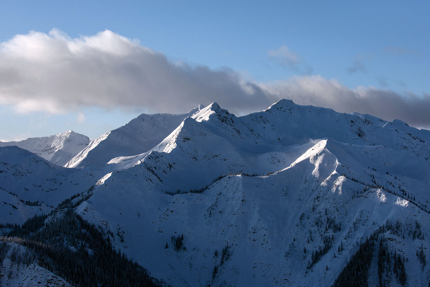 カナダ内陸の小さなスキータウンゴールデン。この町にあるキッキングホーススキー場の山頂には、今どき珍しい低速のリフトが架かっており、リフトを降りたピークからは誰もが立ち止まるほどの絶景が広がっている。急峻なクートニーの山々だ。なかにひと際目をひくピークがあり、三角形に尖ったそのトップからはチャレンジングな斜度がボトムまできれいにつながっている。