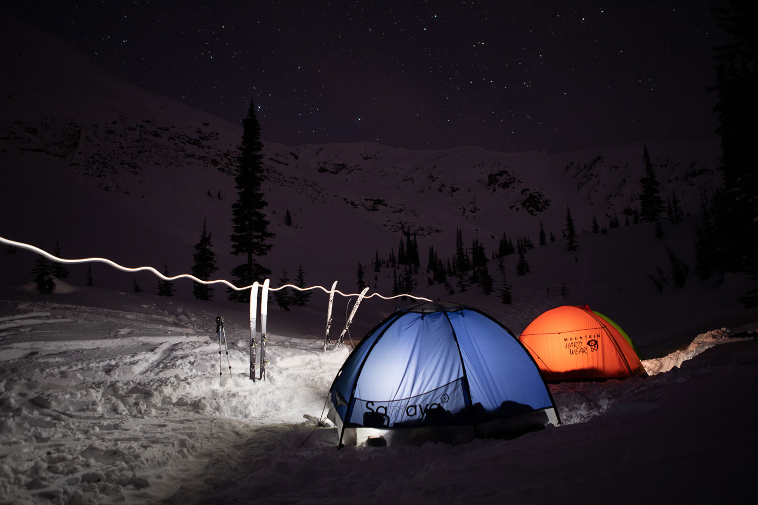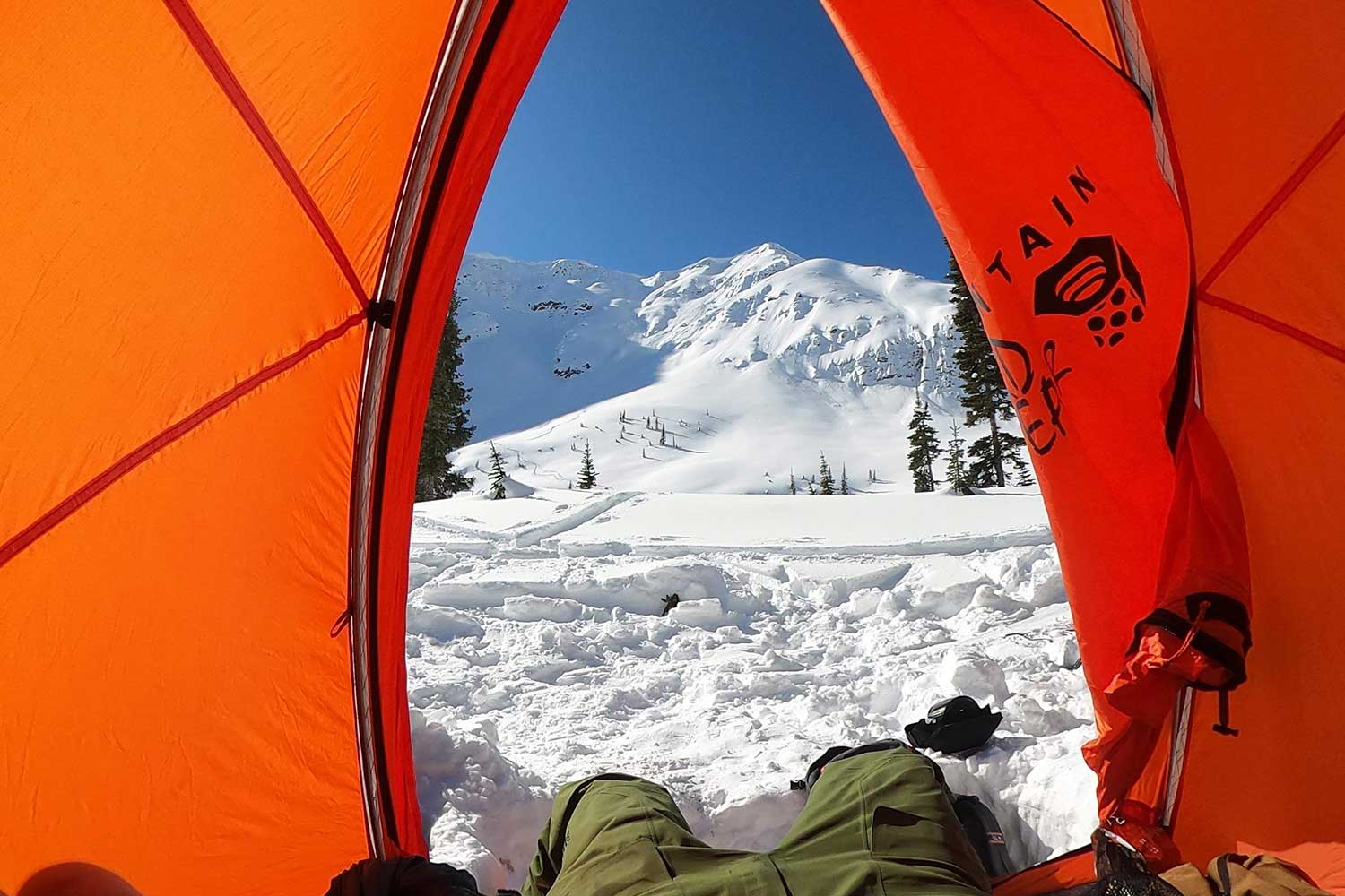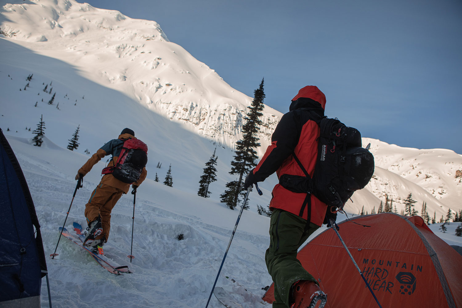 昨日はキッキングホーススキー場から深い谷を越えて、ピークの麓までテントを担ぎ上げた。滑る斜面に光が当たるのは午前中のみ。登るルートは確認済みだが、いかんせんなんの情報もないので、どれほど苦戦するかはわからない。