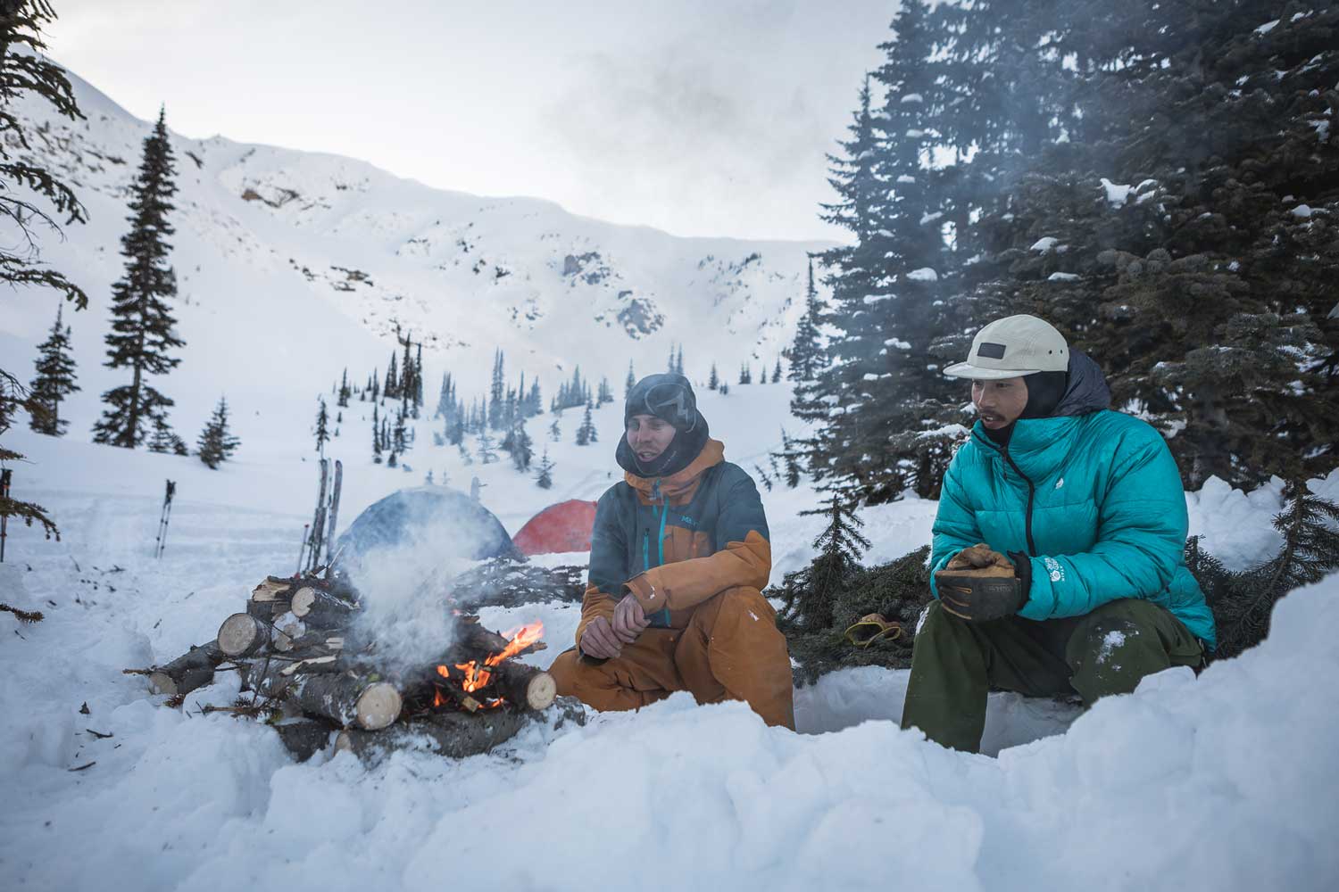「Interior Cold Smoke (インテリア・コールド・スモーク)」。吹くと飛んでしまいそうな内陸の軽い雪を、ローカル達はプライドを込めてそう呼ぶ。「インテリア=内陸」という意味で、ウィスラーのある「コースト=海岸沿い」と対比して使われることが多い。「コースト側は雪がたくさん降るけど、湿っていてディープ。俺たちの方がいい雪を滑っているぜ!」と、ちょっとライバル視した感覚があって面白い。