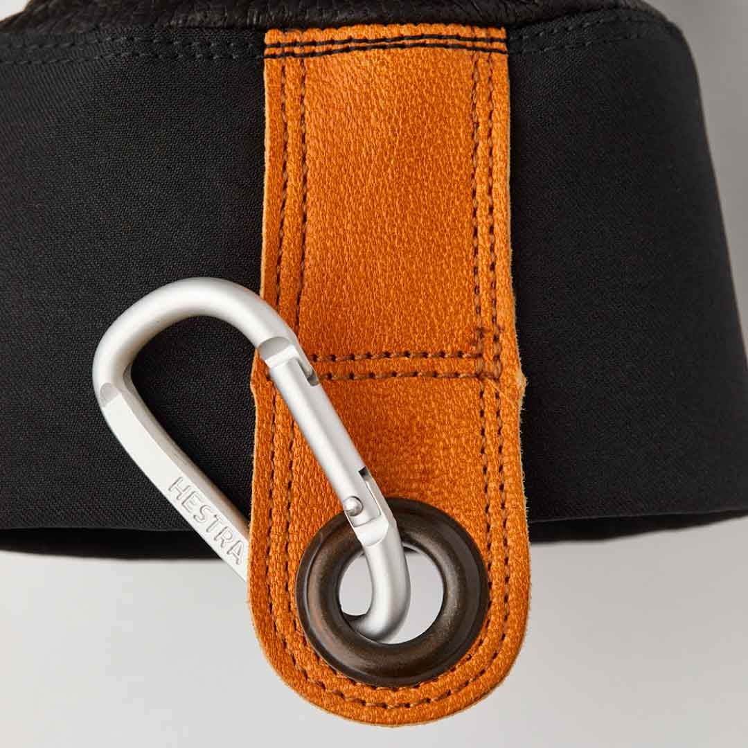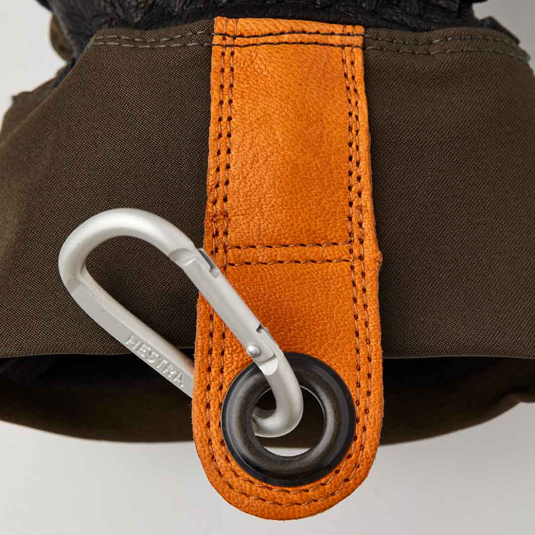 アウトドアで多目的に使える防水透湿性グローブ。手のひら側は耐久性と強度のあるゴート(山羊)皮革、表面には防水透湿コーティングされた4ウェイストレッチのナイロン素材。縫い目のない3Dで編み上げたメリノウールライナーは手触りに優れ、湿気を含んでも保温力を維持します。薬指外側にはグローブ内部を下向きに吊せるカラビナループ付き。雪や小雨の中でハーネスに外付けしても安心です。バックカントリースキー&スノーボードからアイスクライミングまで多用途に使え、街使いでも違和感のない色と風合いに仕上げています。