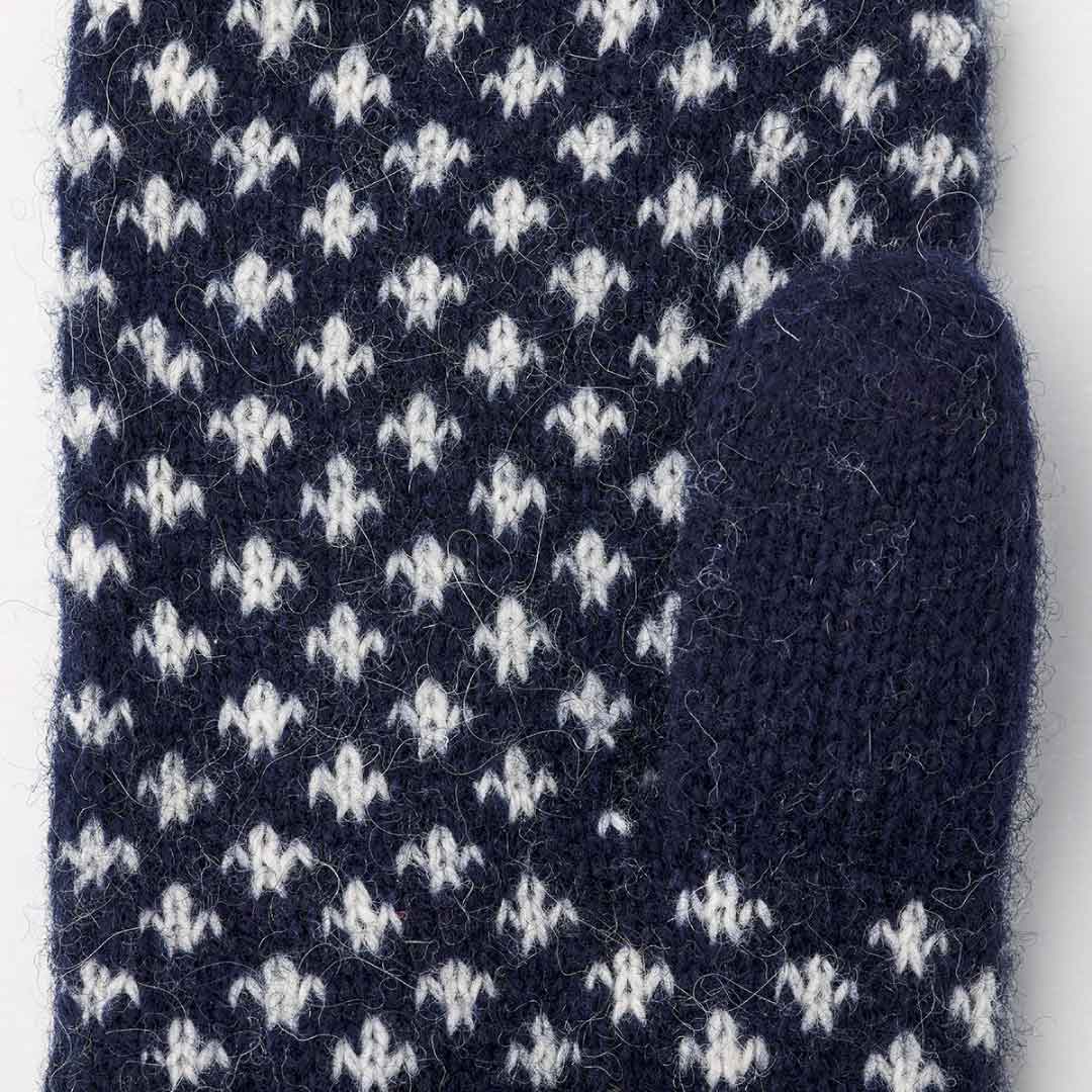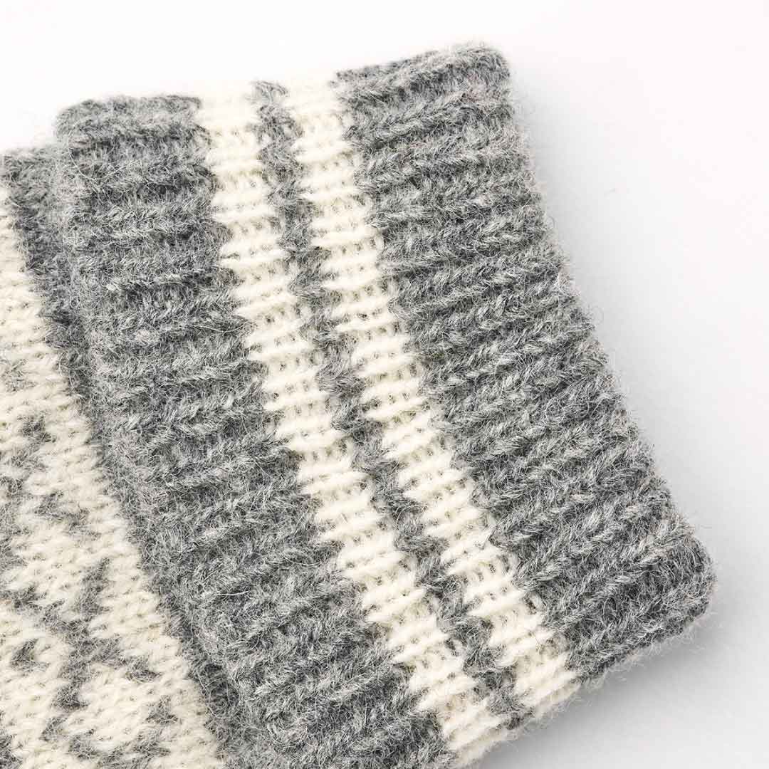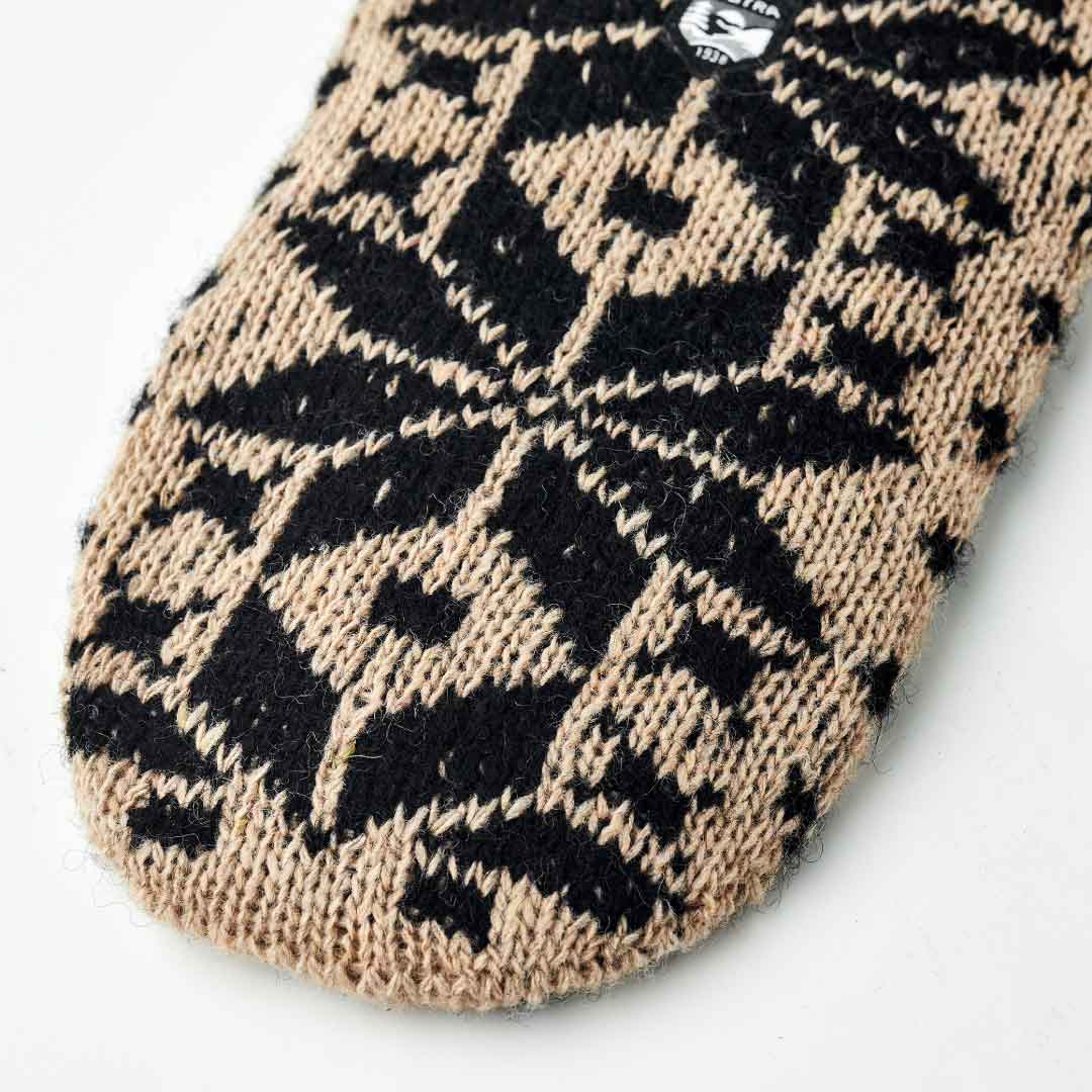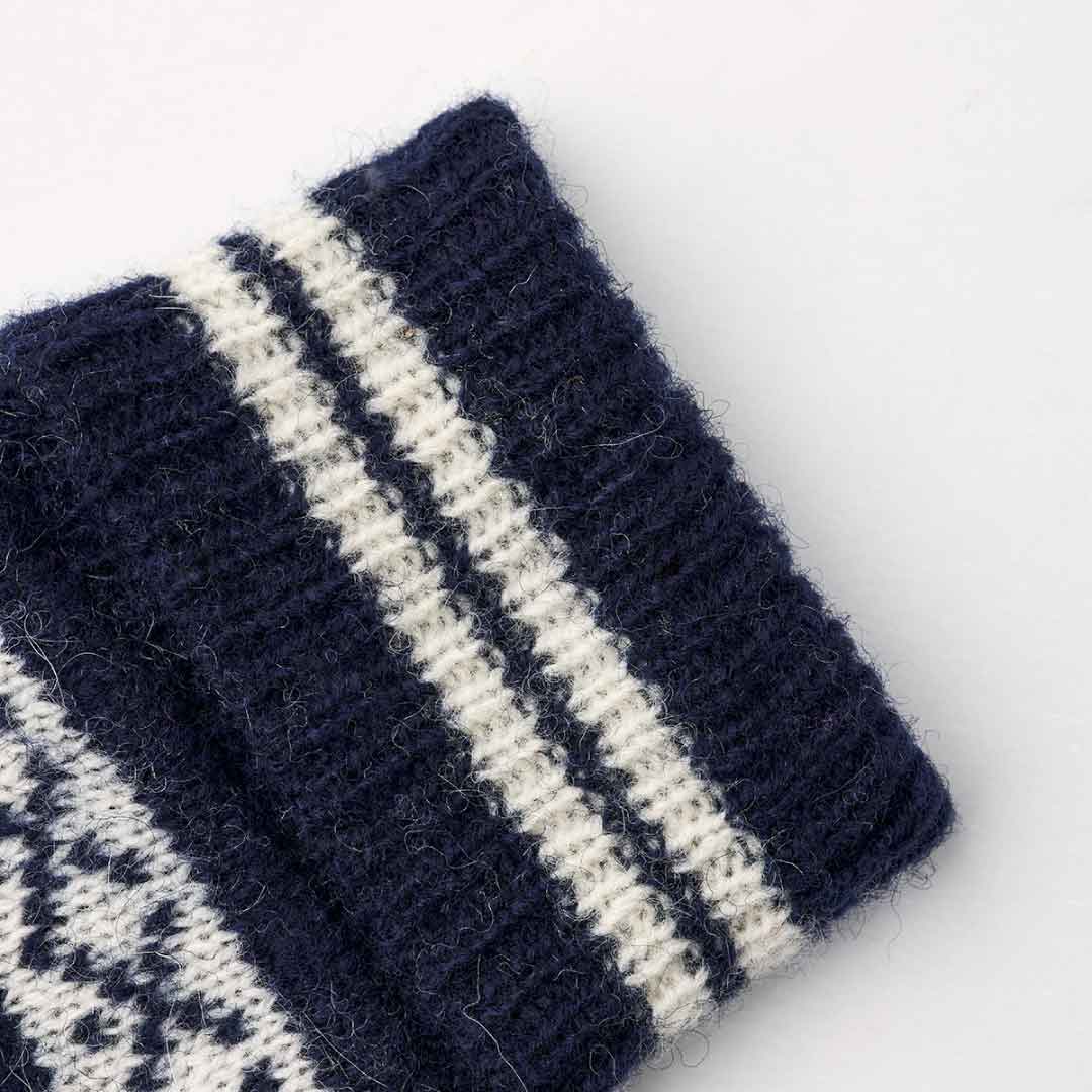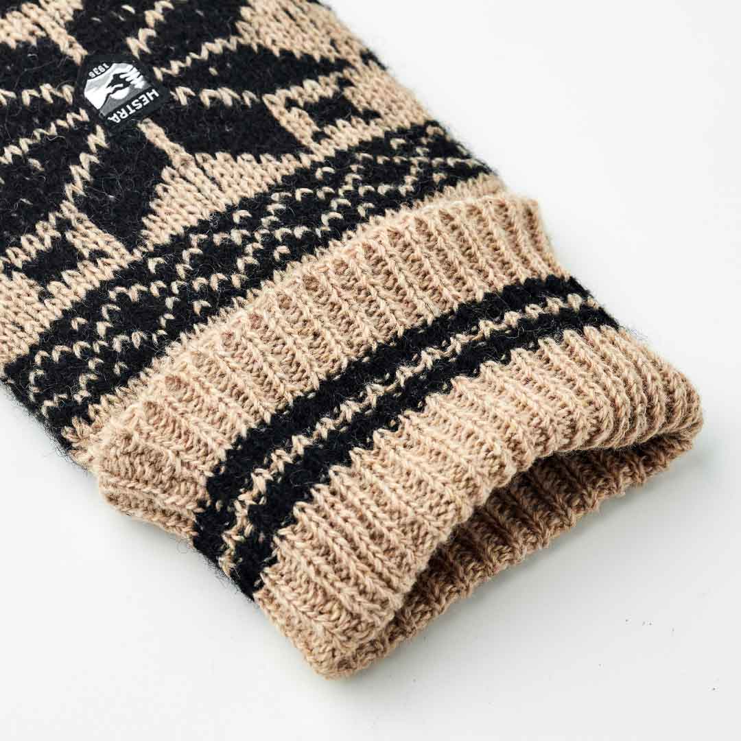 「Nordic Wool Mitt」と同じく、スカンジナビアの伝統柄をジャガードで織り込んだレトロなカジュアルグローブ。「Nordic Wool Mitt」よりも若干薄手の織りで、手首はフィット感のいいリブニット仕様です。