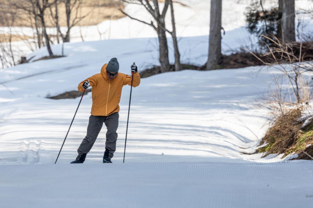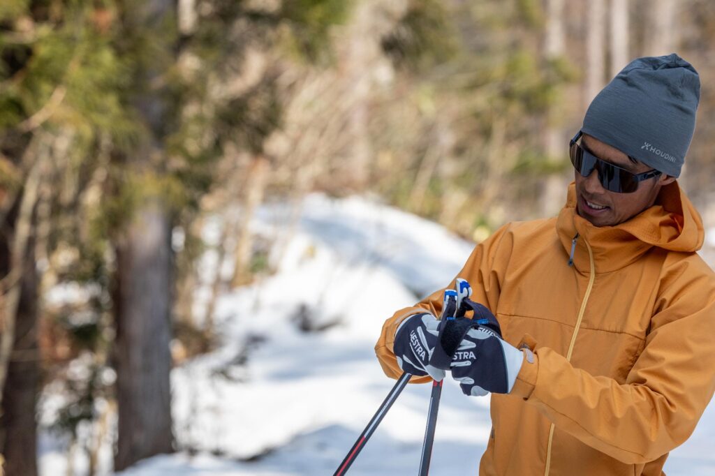 気温が5℃以下という寒い雪の日でも、温かく快適であること。厚手に見えて、しなやかであること。ポールを握ったときのゴワゴワ感がないところなどが気に入っている。