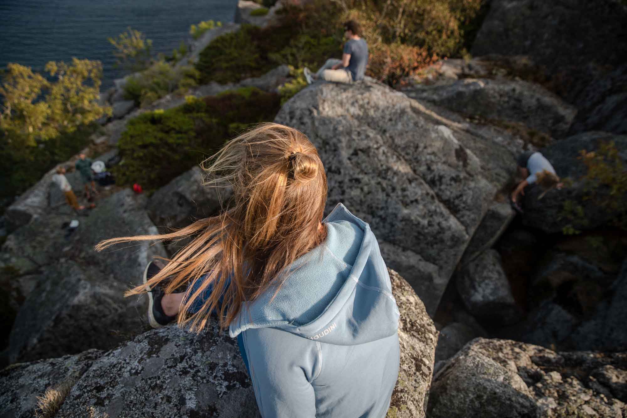 動きやすく快適で、あらゆるアクティビティにフィットする通気性を備えたウエアは、ロッタの周りのクライマーやスキーヤーのコミュニティに、瞬く間に広まりました。自分たちが着たいウエアを妥協することなくデザインし、ラインナップを徐々に増やしていたちょうどその頃、ロックトリップに出かけたニュージーランドで、ロッタはPolartec® Power Stretch® Pro™という革新的な素材を手にします。この素材は、ロッタが頭の中で描いていた、理想的なミッドレイヤーにぴったりのように思えました。フィット感に優れ、レイヤリングしやすく、街でもバックカントリーでも頼りになり、ずっと触れていたいほどに柔らかく、まるで魔法のような……。それは、ロッタが理想とするミッドレイヤーに欠けていた、最後のピースだったのです。