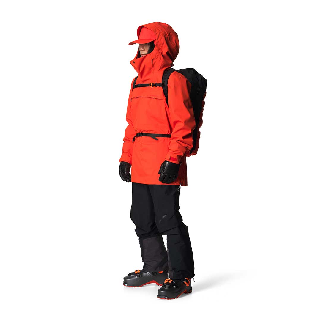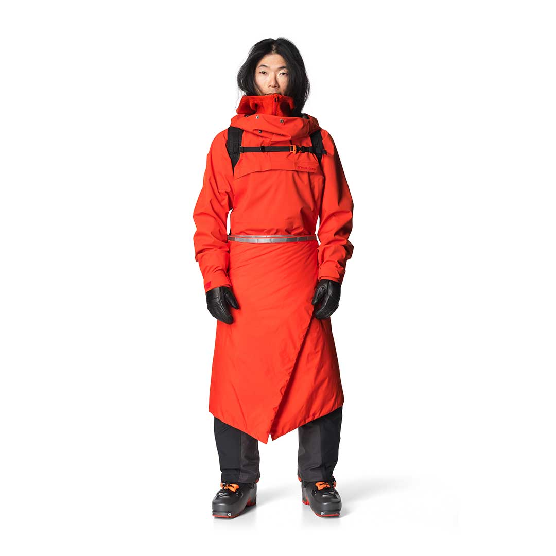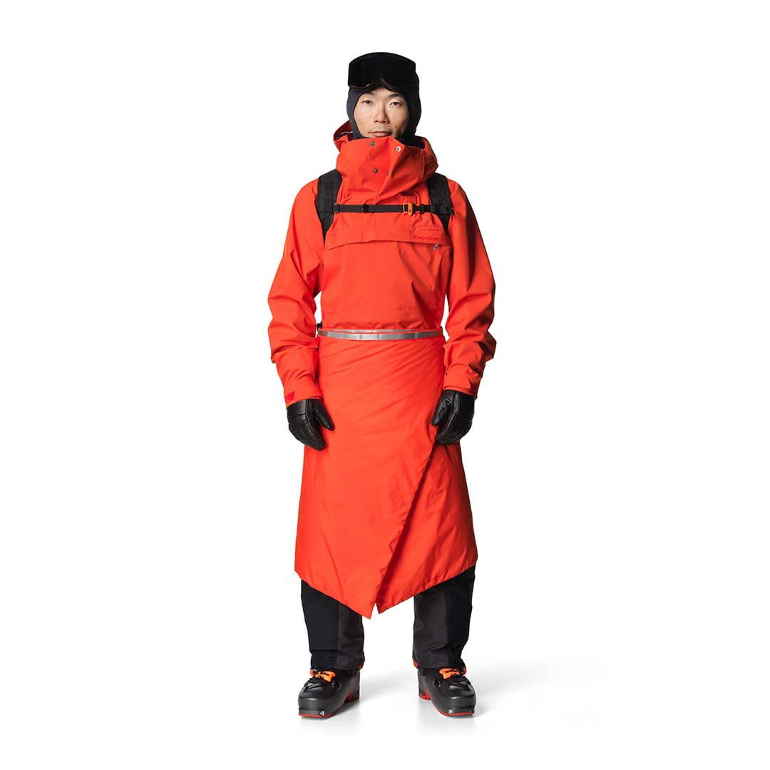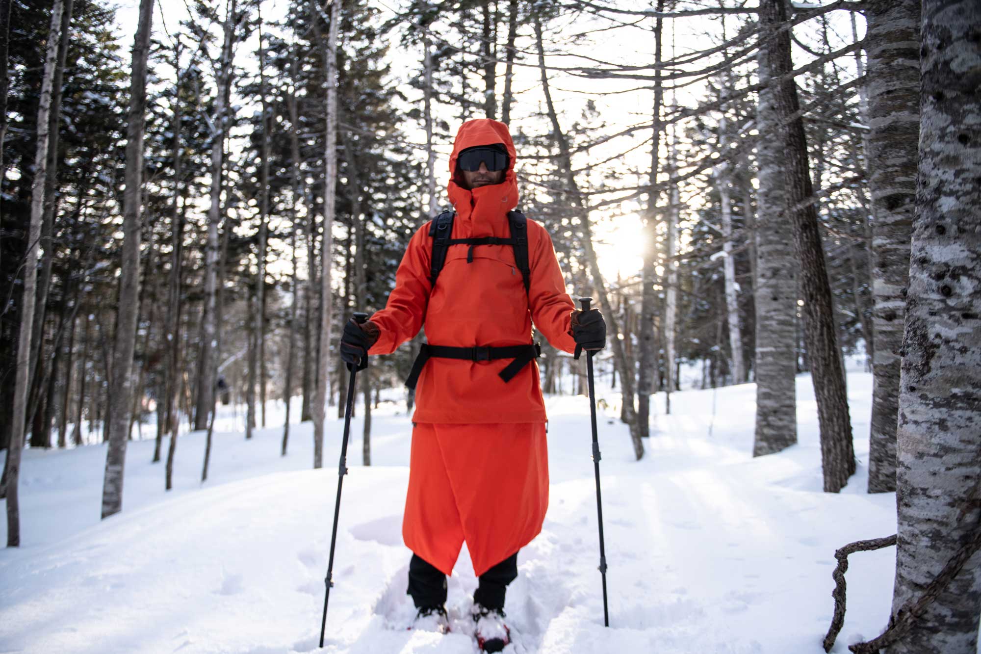 この余分な機能を削ぎ落とすことで自由度が広がります。プロダクトが1つの特定のアクティビティ用に設計されている場合、他のシーンであまり役に立たない傾向にありますが、このシェルターアノラックはどんな場面にも適した必要最小限の機能に抑えられているため、非常に高い汎用性があります。ビッグマウテンスキー、登山、サイクリング、カヤック、またその他のアクティビティや日常生活を快適にするかどうかは着用者次第であり、このウェアラブル・マルチツールをバックパックに入れて携帯しておくことで、予期せぬ天候から身体を保護するシェルターとなります。