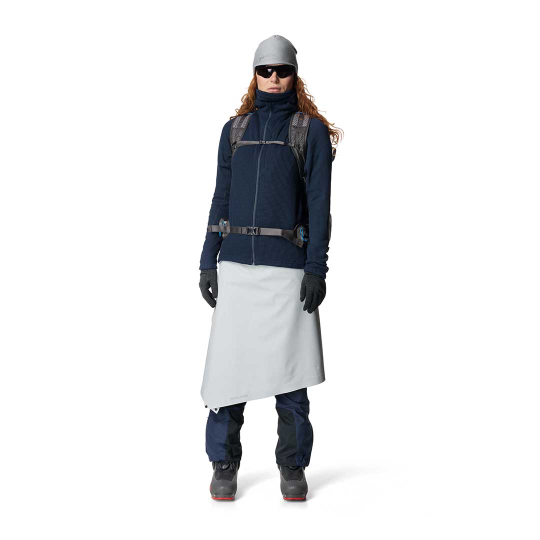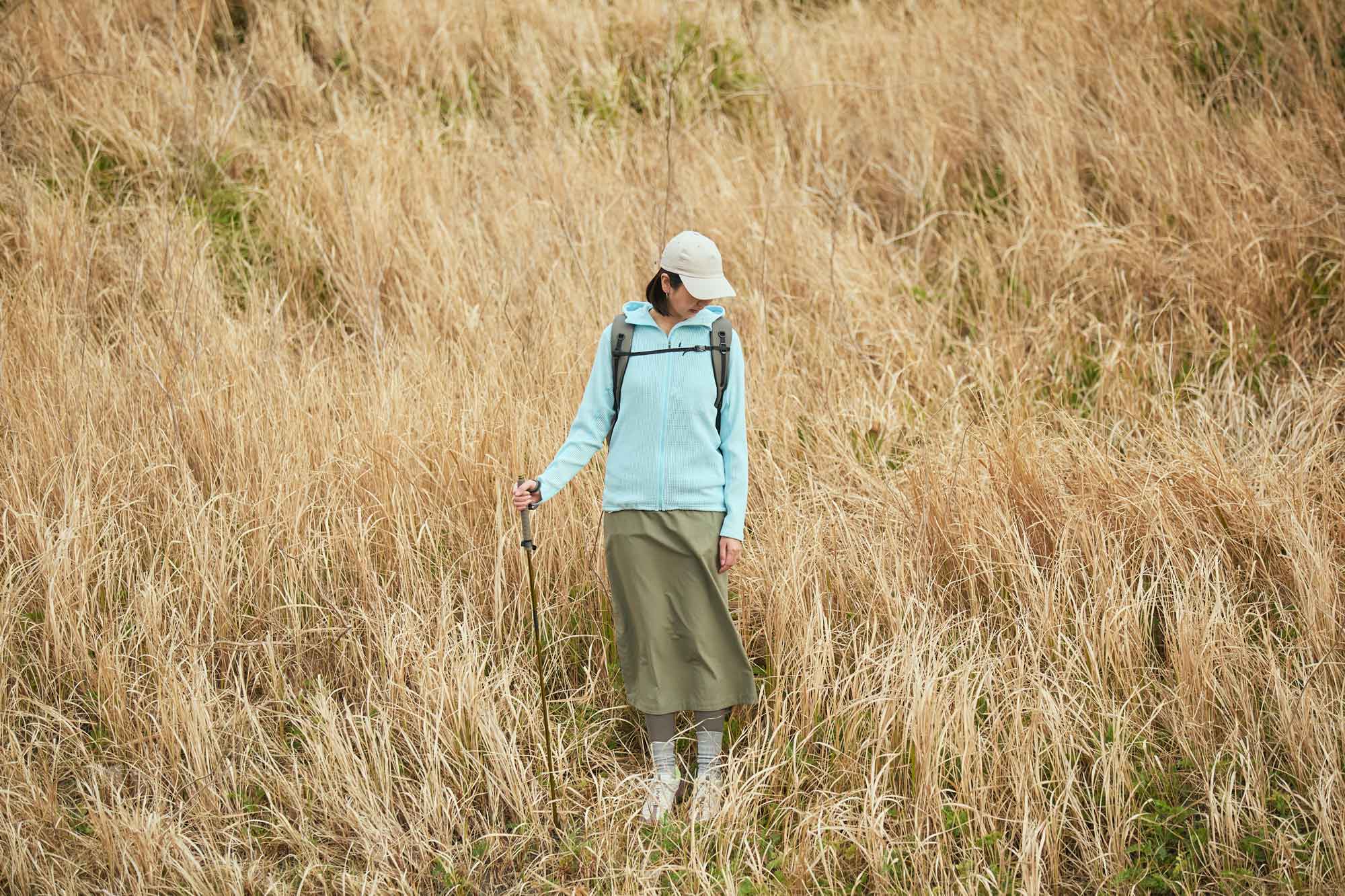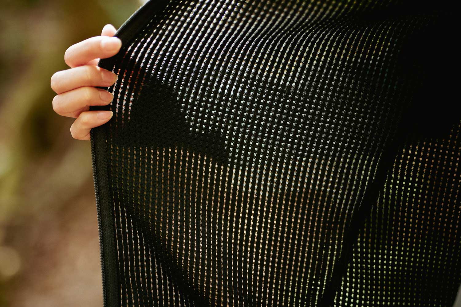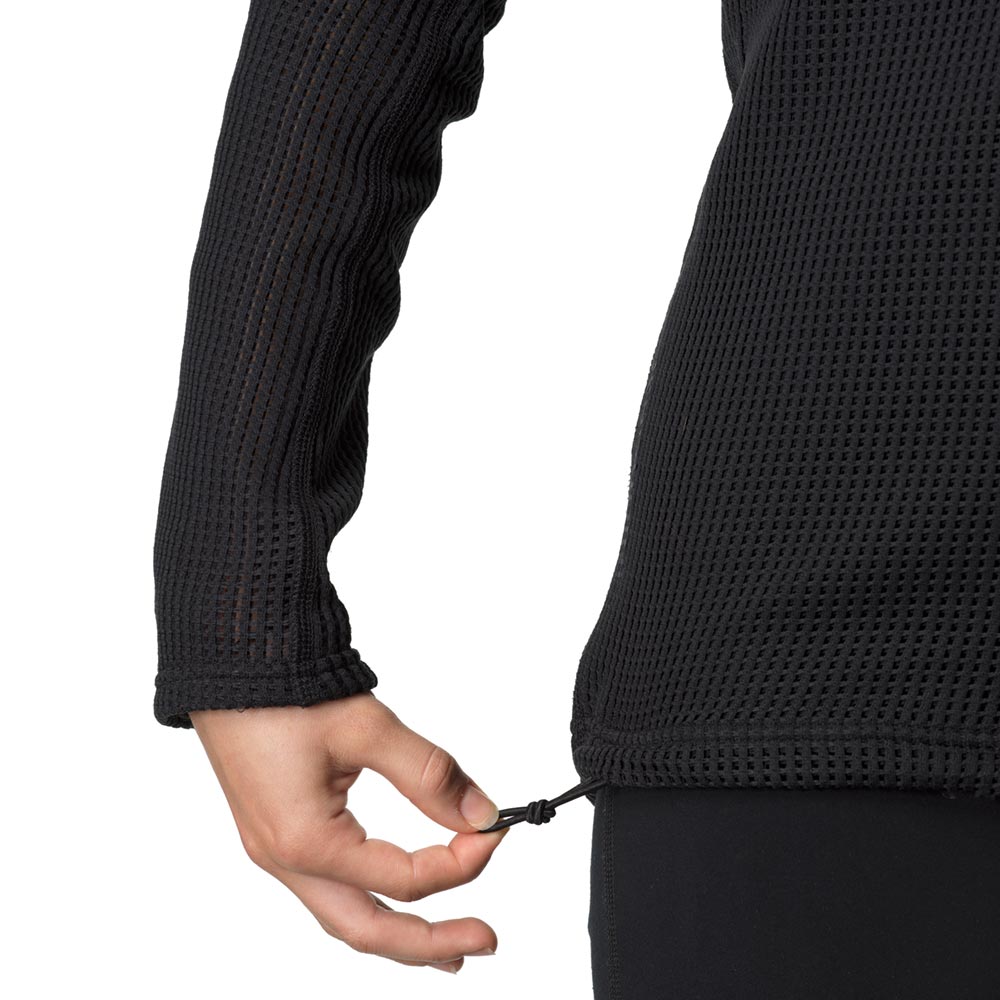 高性能な生地は、最新のPolartec® Power Dry® Meshで作られ、余分な熱を閉じ込めることなく断熱性を提供するメッシュ構造により、レイヤリング次第で異なる効果を得られることが特徴です。アウターとして着用すると、強力なエアフローにより衣服内に空気が流れて余分な熱や湿気が排出され、シェルの下に着用すると、暖かい空気の層が構築されて優れたレベルの断熱効果を発揮します。また、素材は高い速乾性と耐久性をもつリサイクルポリエステル100%で、リサイクル可能であり、フィラメント繊維構造により、通常のフリースに比べてマイクロファイバーの抜け落ちはほとんどありません。