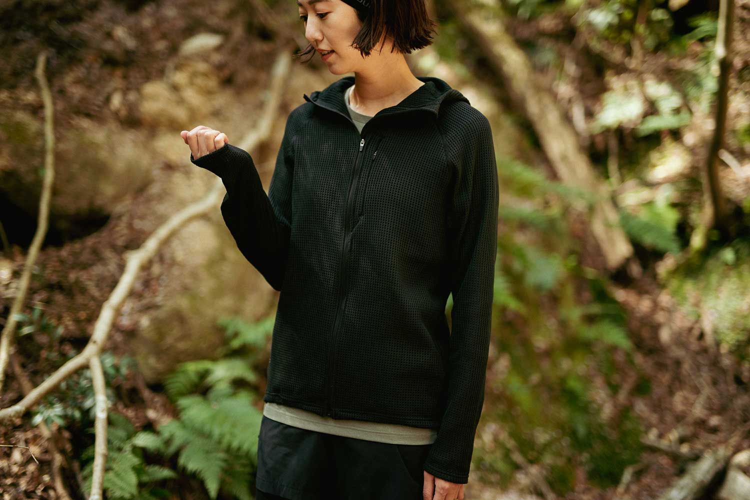 ハイパルスアクティビティに対応した風通しの良い高性能フーディ。軽量性と保温性、そして並外れた通気性を備えた革新的なメッシュ生地が、ハイペースな活動で魔法のような快適性をもたらします。