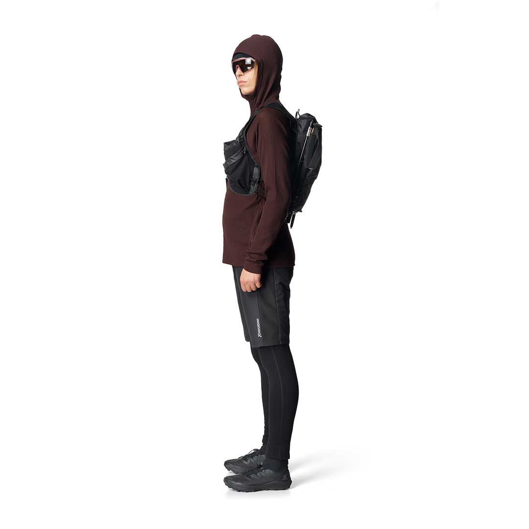 高強度のアクティビティ向けにデザインされたフーディは、一年を通してさまざまなシーンで活躍します。春や秋の肌寒い朝のランニング、夏のトレッキングではTシャツやタンクトップの上に着用し、冬はバックカントリー、スキーツーリング、クロスカントリースキーに最適です。さまざまなレイヤリングに合わせやすいレギュラーフィットを採用しています。