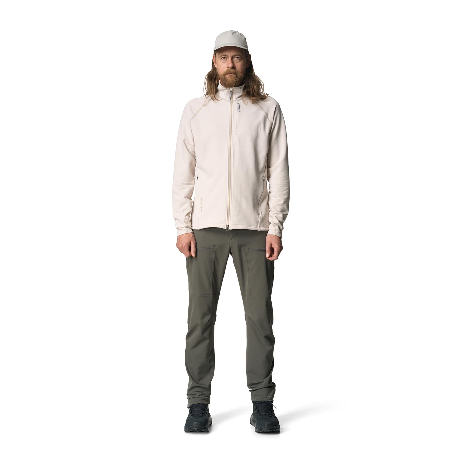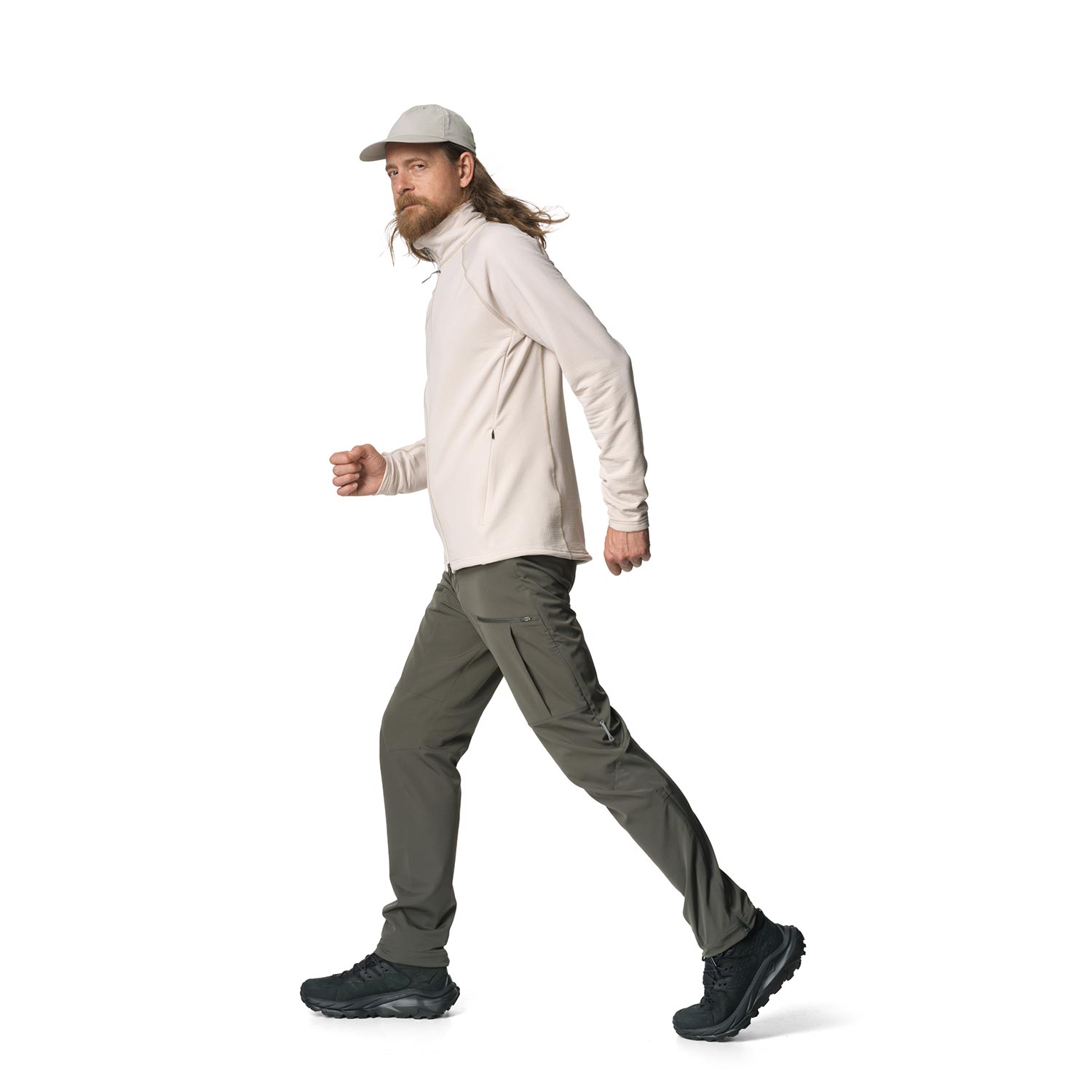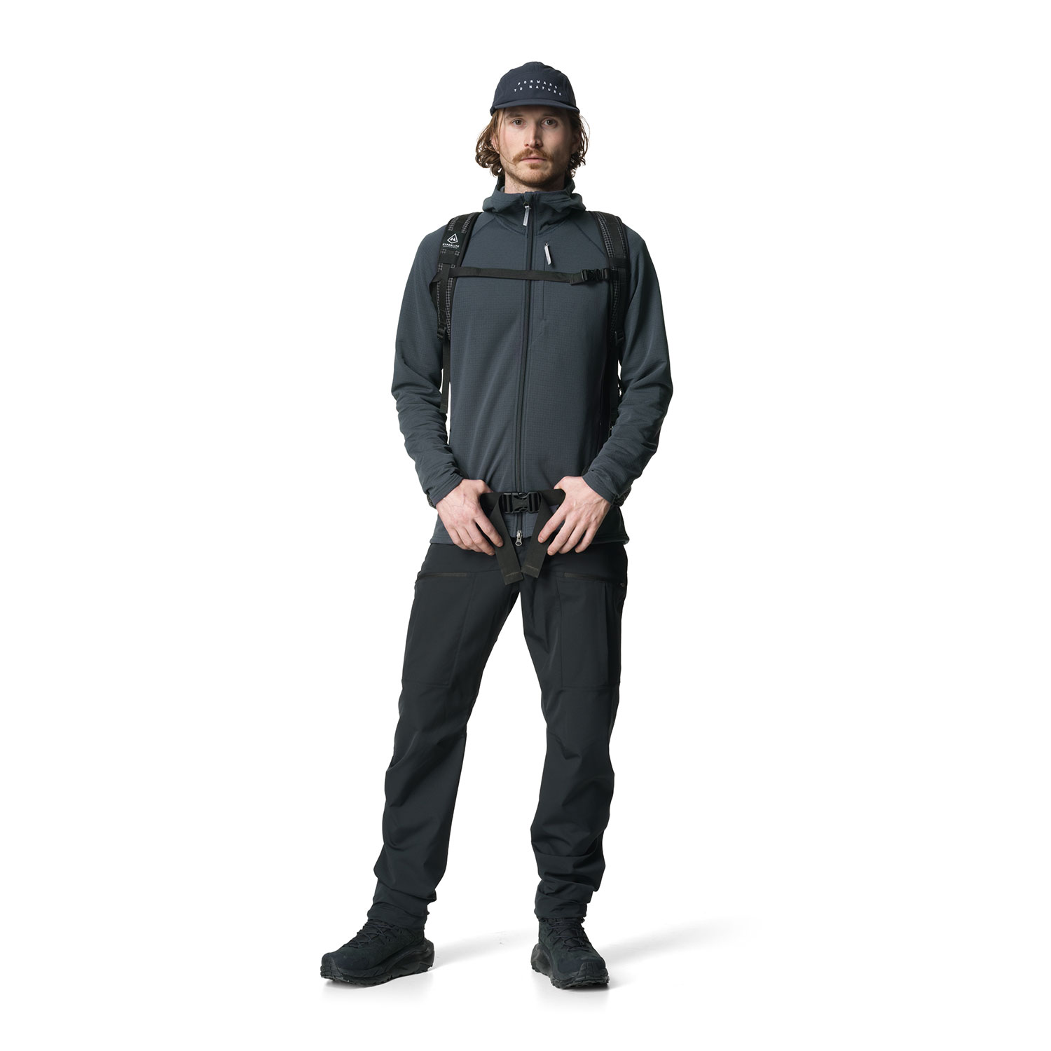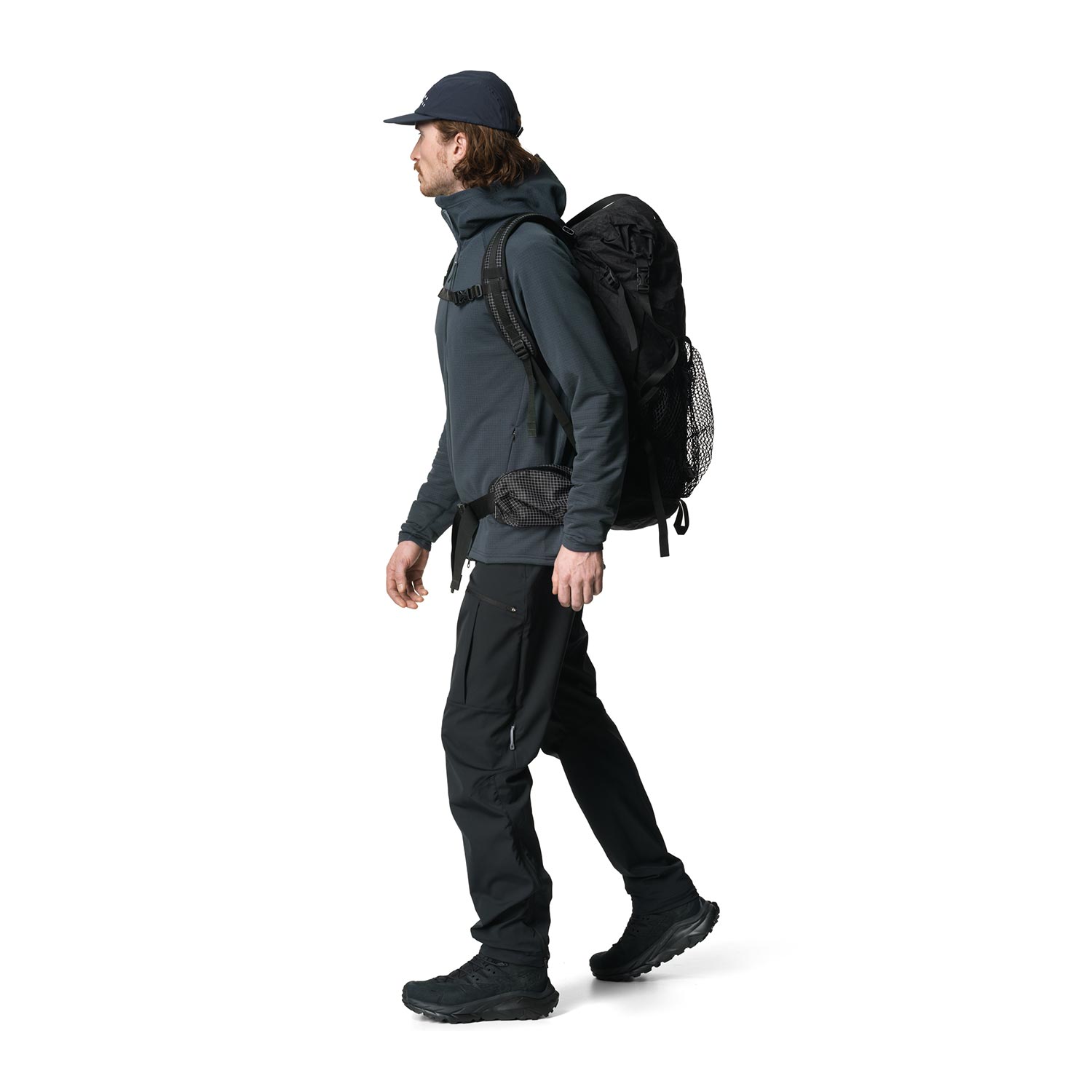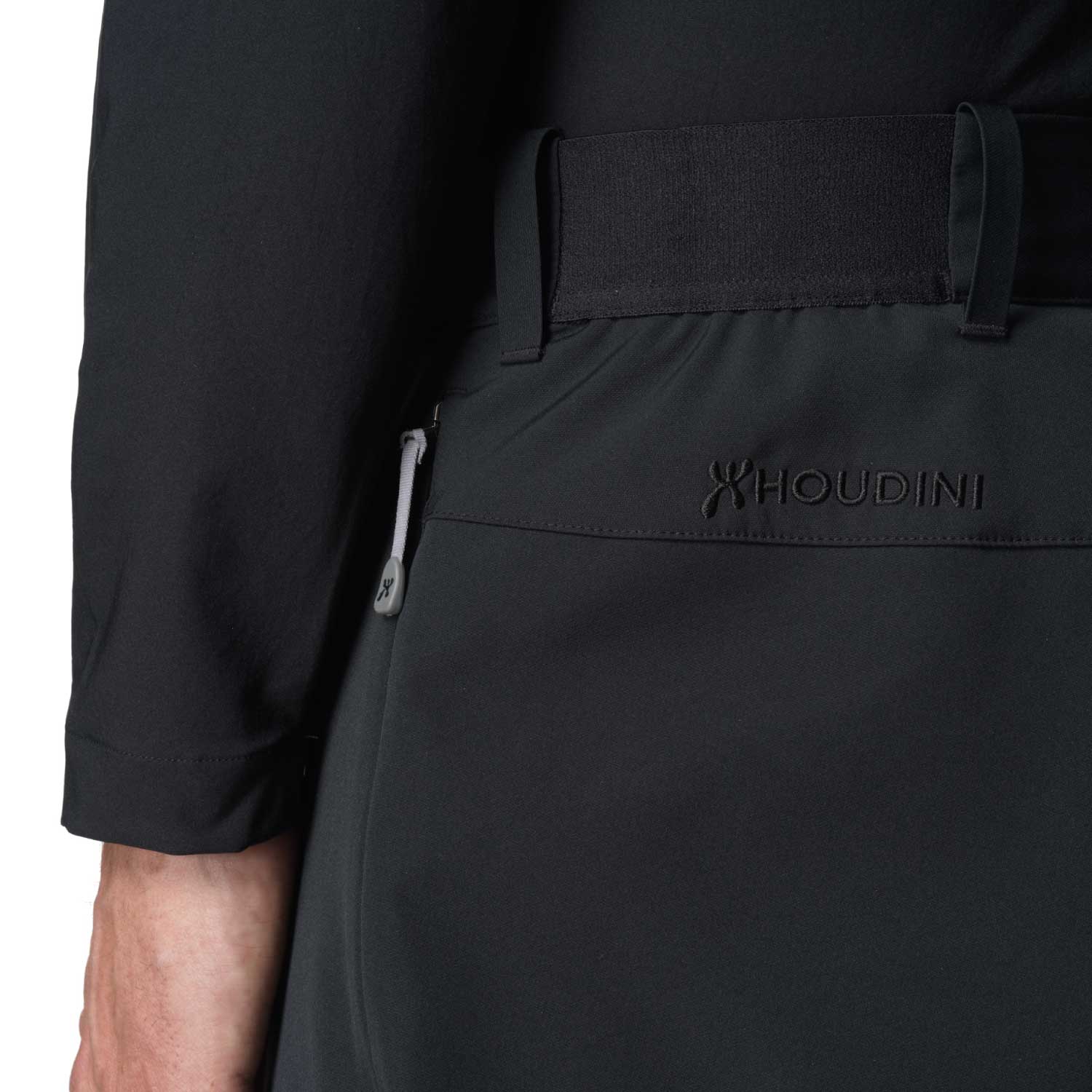 More Pantsは、Houdiniの歴代のトレッキングパンツに使用されてきたMotion Comfortshell™で作られています。これは、何年もの使用に耐えられることが証明されている最も丈夫なファブリックのひとつです。非常に高い耐久性をもち、通気性と伸縮性に優れながらも防風性と撥水性を備えたソフトシェルで、内側の柔らかなツイル構造により、素肌にぴったりとフィットします。また、75%リサイクルポリエステルで作られた生地には、PFASフリーの撥水処理が施され、着古した後もリサイクル可能な繊維のため、完全に循環型の製品であることが保証されています。