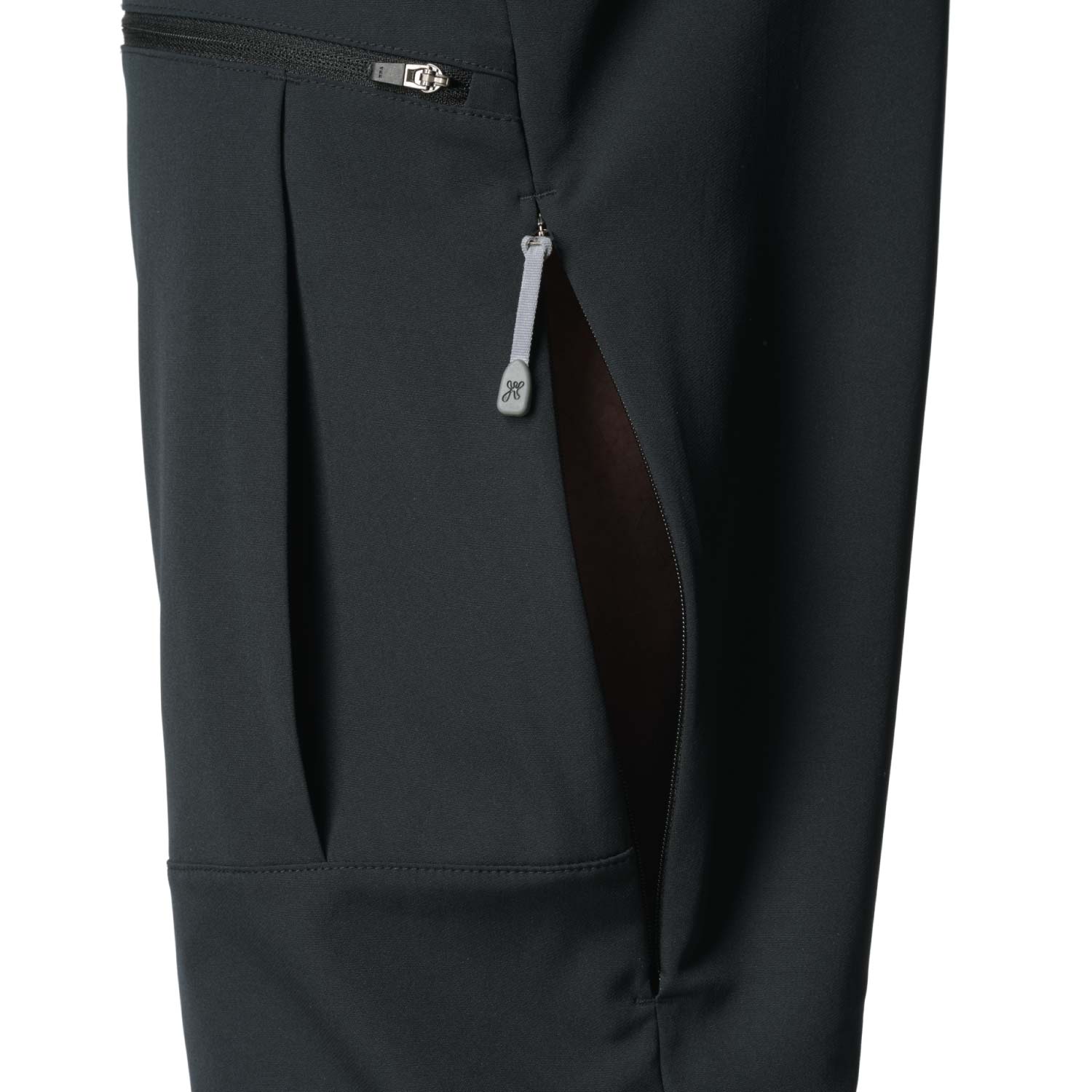 パンツには、ジッパー付きハンドポケットが2つ、太腿のジッパー付きポケットが2つ(そのうちの1つは内側に携帯電話をホールドしたり、鍵を取り付けるための伸縮ストラップが付属)あり、十分なスペースで多くの持ち物に対応した収納力です。さらに、最適な動きやすさを実現する立体構造の膝、裾を調節可能なドローコード、ジッパーの後ろにはマチがあり、どんなブーツにもフィットします。ハイペースのアクティビティで暑くなってきたら、太腿サイドの大きなベンチレーションを開けて通気性を高めることが可能で、すべてのポケットとカットラインは、ハーネスやバックパックに干渉したり擦れたりすることなく機能するように設計されています。また、ウエストの一部にゴムを採用し、より快適な着心地と、さまざまな体型へのフィット感を向上させました。