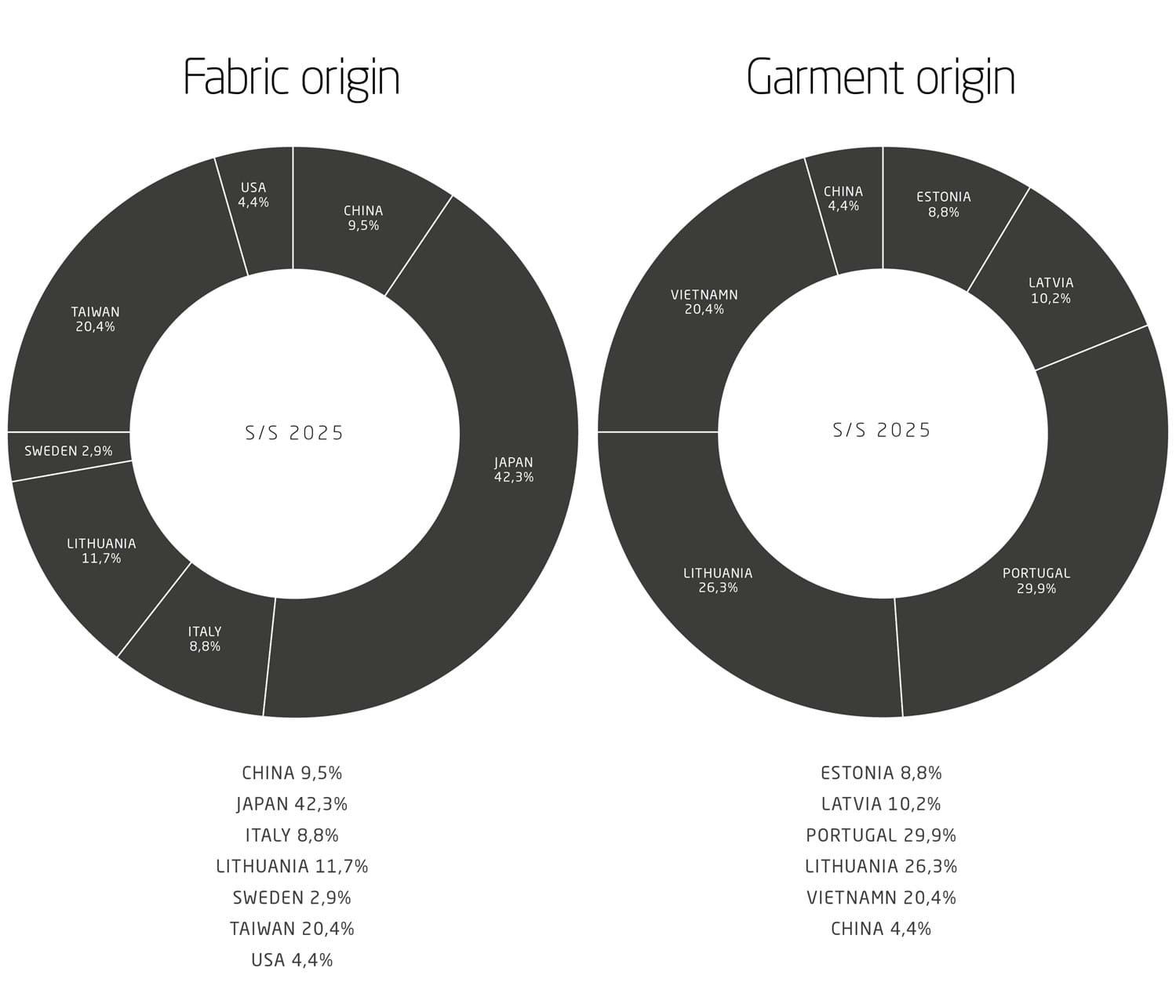より良いビジネスと製品を目指す私たちのサプライチェーンはグローバルですが、協力関係にあるサプライヤーの数は決して多くありません。そのほとんどは、高い社会的基準が法律によって定められ、環境上の法的要件が厳しく、管理機能が整っている先進国で生地を生産しています。