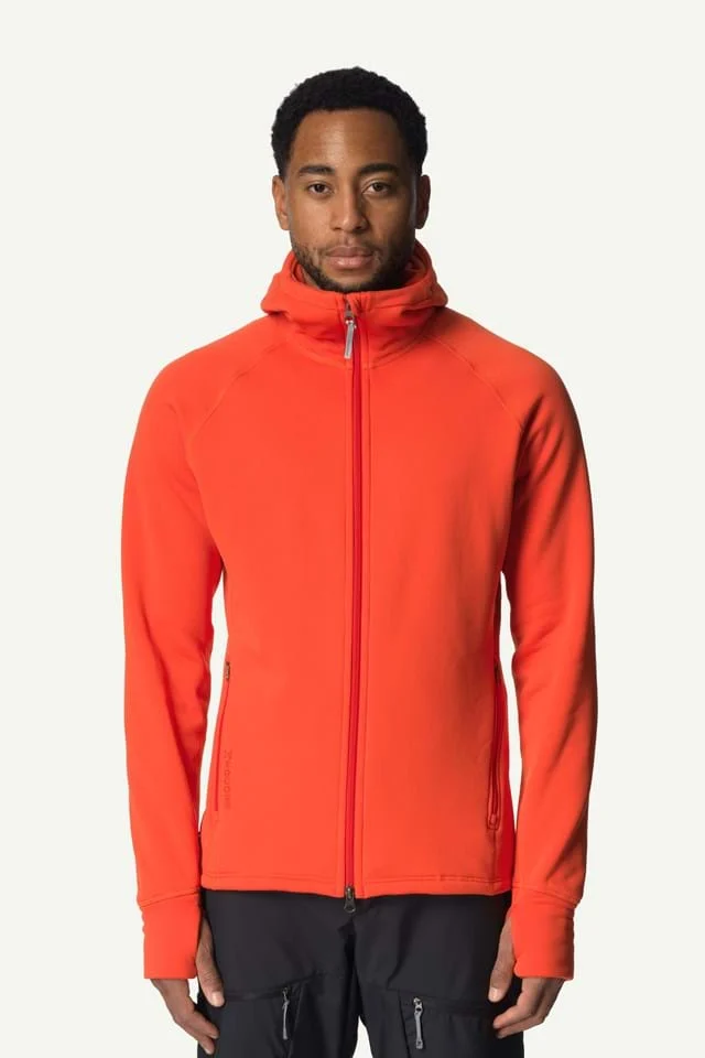 Power Houdiを着用すると、とても軽く身体にフィットしますが、2箇所だけ少しだけタイトに感じます。それは、サムホールの付いた長めの袖口と、ぴったりとした高い襟です。手首と首は、主要な動脈が皮膚の近くにあり、身体の中でも最も敏感な部分。若干きつくフィットさせてこの敏感な2つの部位を保護することは非常に大切なことであり、そうすることで身体全体の血流が温まります。これが、Power Houdiが驚くほど快適な秘密です。