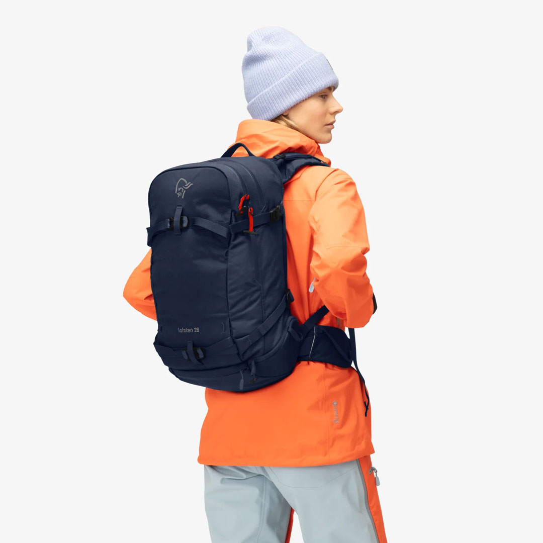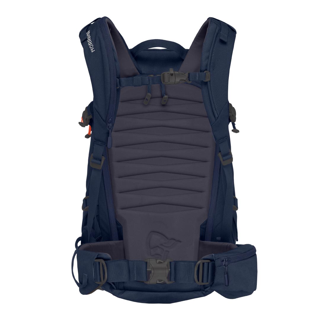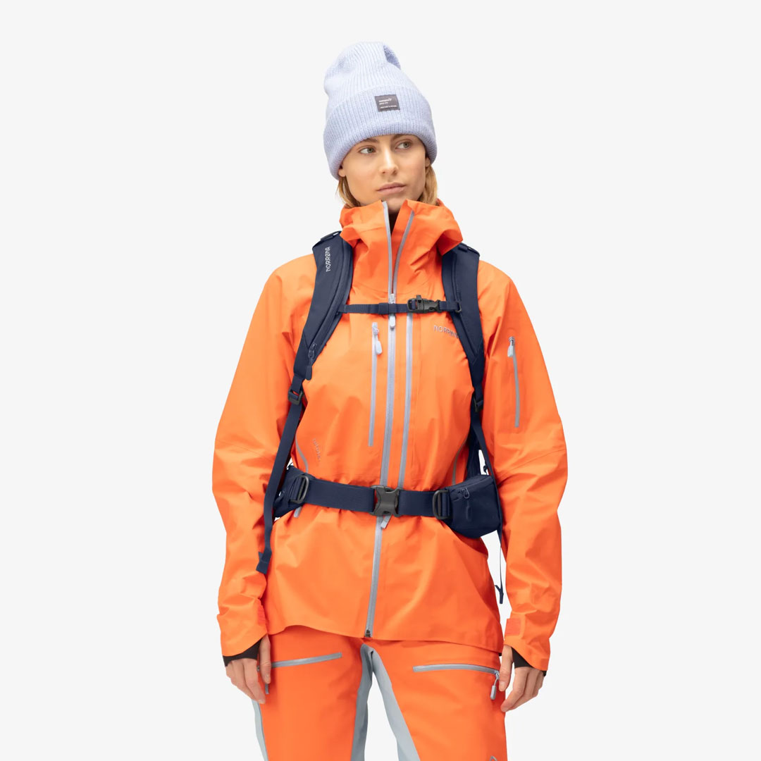 耐久性の高いマウンテニアリング・スキー/スノーボードバックパックです。30L Packよりも背面長が短く、女性や小柄な男性の為に作られました。板を取り付けたままメインの荷室へアクセスできる背面エントリー仕様。バック上部にはゴーグルが 2つ入る十分なスペース、前面にはアバランチギアを整頓して収められる仕切りを備え、底部サイドには背負ったままアクセスできる水筒、クランポン、ロープなどを収納できる荷室があります。ヘルメットを取り付けられ、内側に雪が流れ込むのを防ぐブリザードネットがボトムに装備されています。ヒップベルトには小物を入れられるポケットとギアループが配されています。メインファブリックは耐久性に優れた320デニールのECONYL?素材(リサイクルナイロン)で、高品質であり資源の再生プロセスを実現しています。また、耐水圧2000mmのPUコーティングが施されています。