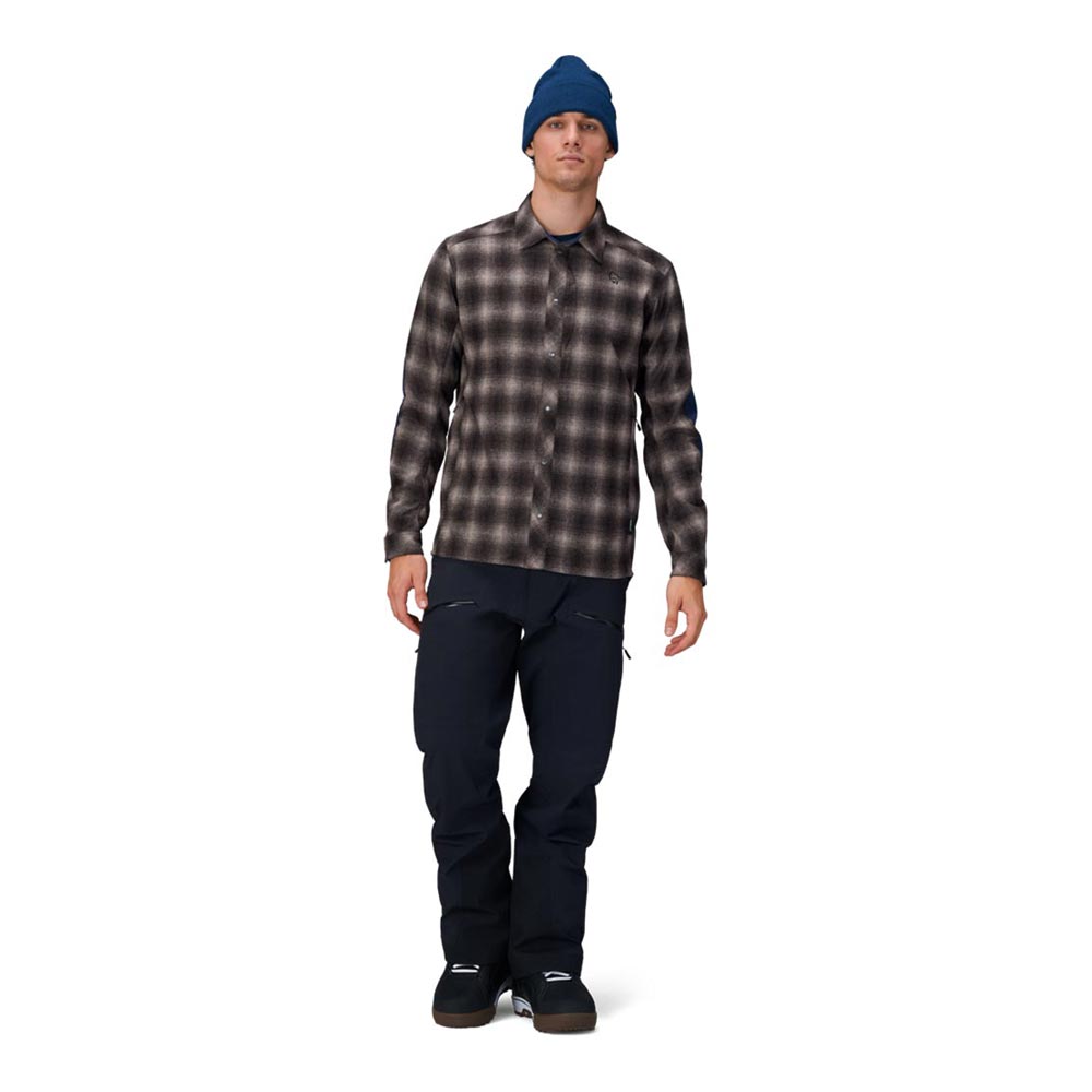 長い時間をかけてアンバサダーによりテストされたウールシャツです。丈夫で冷えにくいリサイクルウールを多く含むこのジャケットは、優れた中間着としての機能を持ちがら普段着としても街に溶け込みます。肘、袖口と襟の裏にはコーデュロイを用いて補強し、肩周りの裏にはナイロンを配して摩擦を少なくしました。腹部にはジッパー付きハンドウォームポケット、襟を立ててボタンで締めると冷気の侵入を防ぐことができます。