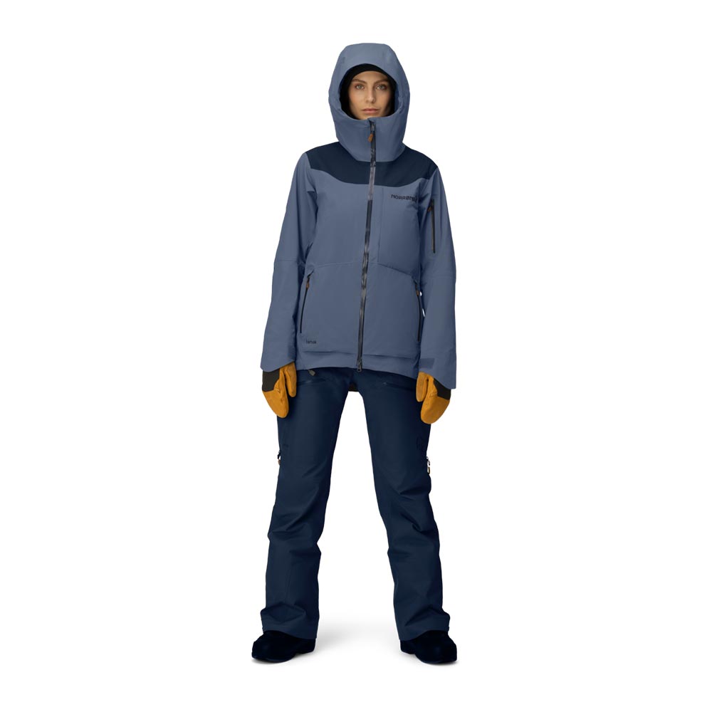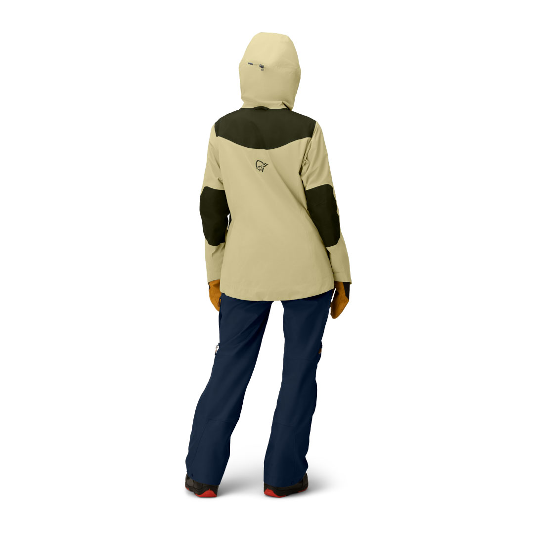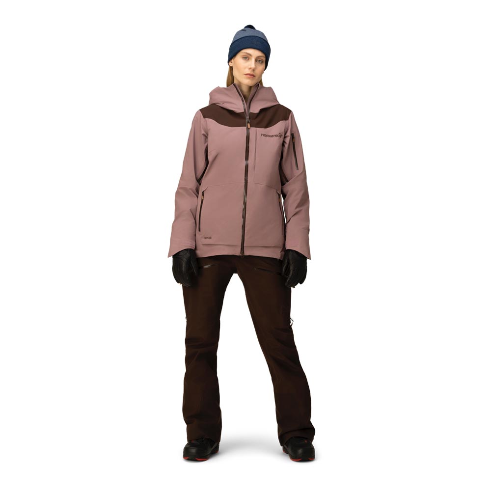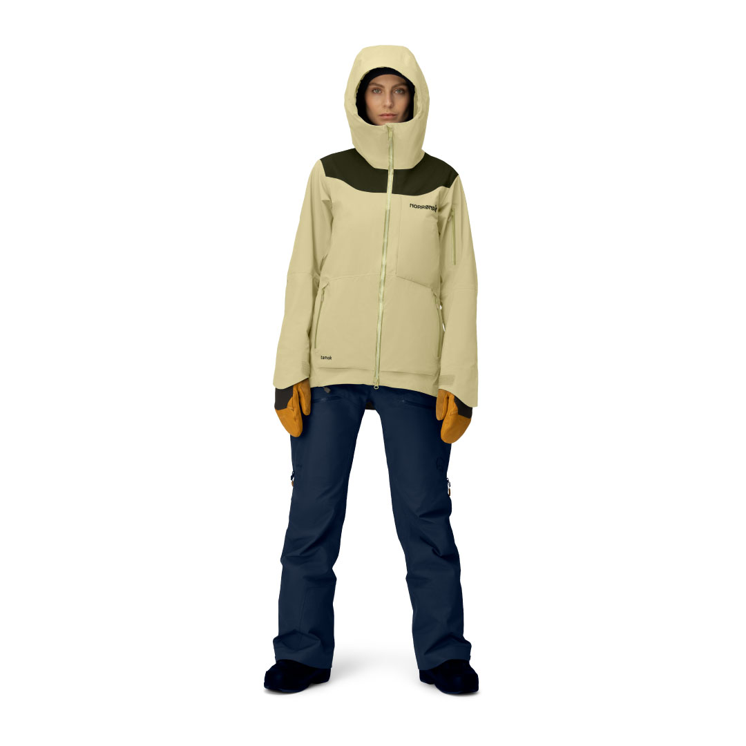 環境負荷の低減を実現した最新のGORE-TEX® ePEメンブレンを採用したスノーライディングジャケットです。フラッグシップのtamok Gore-Tex Performance Shell Jackと同じテイストのデザインながらも、着丈は短め。3レイヤーよりも柔軟で着心地の良い2レイヤーで、裏地に配したメッシュ素材により、多少の保温性もあります。メインの表地には70デニールの100%リサイクルナイロンを使用し、肩と肘にはさらに耐久性の高い150デニールのリサイクルナイロンで補強。裏地のライニングは耐久性と通気性を高めるため、織物と編み物のポリエステルメッシュを使い分け、摩擦が強く生じる肩と袖、フード裏には滑りの良い織物を、前後の身頃などその他の箇所には通気性の良いメッシュ素材を配置しています。脇下のベンチレーションはメッシュ付きで、転倒したときの雪の進入を防ぎ、一体型のパウダースカートは硬いジッパーもなく裾周りが快適です。
